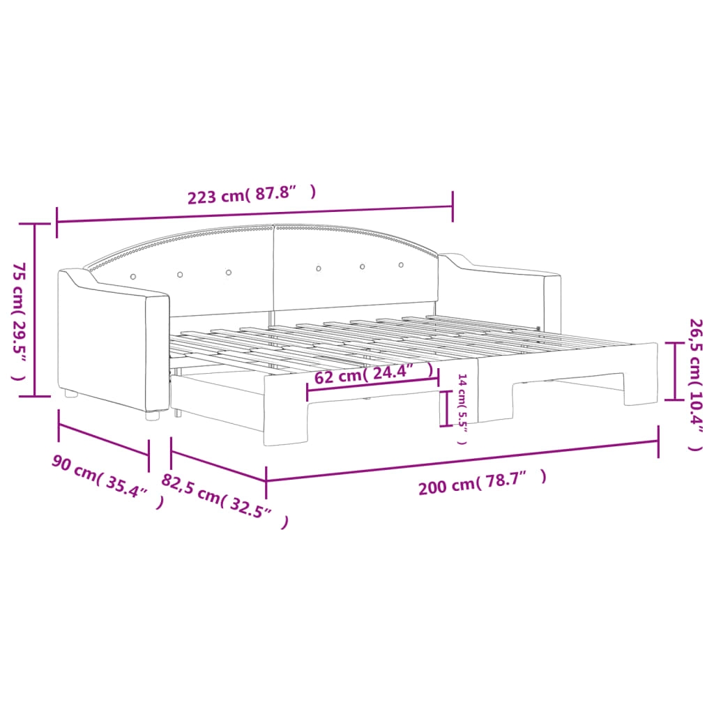 Dieses ausziehbare 2-in-1-Tagesbett, das sowohl als Sofa als auch als Bett dient, ist eine praktische und auffällige Ergänzung zu deinem Wohn- oder Schlafzimmer. Vielseitiges Tagesbett: Das Schlafsofa fungiert tagsüber als Sofa und lässt sich nachts durch Ausziehen des Rollkastens leicht in ein Doppelbett verwandeln - eine praktische Lösung, um Gästen einen bequemen Schlafplatz zu bieten und den Platz zu maximieren. Strapazierfähiger Stoff: Das Gästebett ist mit Stoff bezogen. Stoff weist eine schlichte und saubere Optik auf und ist gleichzeitig atmungsaktiv und langlebig. Robuste Konstruktion: Der Rahmen aus Holz und Metall verleiht dem Schlafsofa Robustheit und Stabilität. Gut zu wissen:Die Matratzen sind nicht im Lieferumfang dieses Bettes enthalten. Wir bieten jedoch eine große Auswahl an Matratzen an. Du kannst in unserem Shop nach passenden Matratzen suchen.