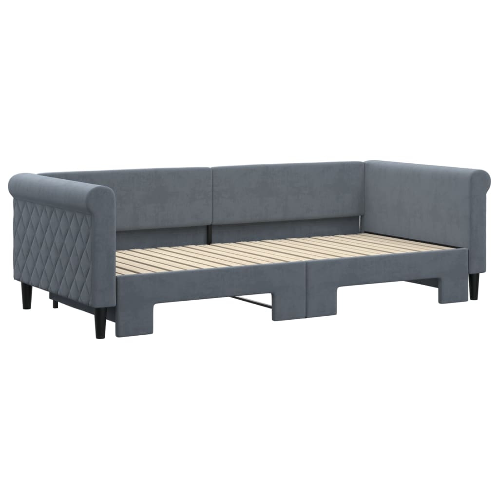 Dieses ausziehbare 2-in-1-Tagesbett, das sowohl als Sofa als auch als Bett dient, ist eine praktische und auffällige Ergänzung zu deinem Wohn- oder Schlafzimmer. Vielseitiges Tagesbett: Das Schlafsofa fungiert tagsüber als Sofa und lässt sich nachts durch Ausziehen des Rollkastens leicht in ein Doppelbett verwandeln - eine praktische Lösung, um Gästen einen bequemen Schlafplatz zu bieten und den Platz zu maximieren.Weicher Samt und robuste Konstruktion: Dieses Schlafsofa besitzt einen stabilen Rahmen aus Holz und Metall und ist mit weichem und bequemem Samt bezogen.Modernes Design: Das Couchbett weist ein modernes Design auf, das sich durch klare Linien, einen minimalistischen Look sowie Natürlichkeit auszeichnet und deiner Einrichtung eine moderne Note verleiht! Gut zu wissen:Matratzen sind bei diesem Bett nicht im Lieferumfang enthalten. Wir bieten jedoch eine große Auswahl an Matratzen an. Du kannst in unserem Shop nach passenden Matratzen suchen.