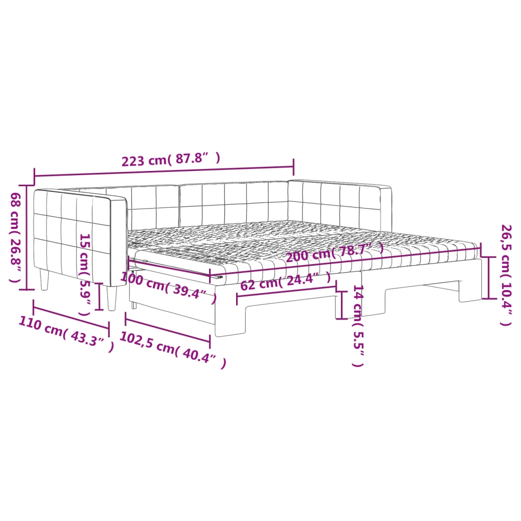 Dieses ausziehbare 2-in-1-Tagesbett, das sowohl als Sofa als auch als Bett dient, ist eine praktische und auffällige Ergänzung zu deinem Wohn- oder Schlafzimmer. Vielseitiges Tagesbett: Das Schlafsofa fungiert tagsüber als Sofa und lässt sich nachts durch Ausziehen des Rollkastens leicht in ein Doppelbett verwandeln - eine praktische Lösung, um Gästen einen bequemen Schlafplatz zu bieten und den Platz zu maximieren.Komfortable Schaumstoffmatratze: Dieses Schlafbett wird samt zwei Schaumstoffmatratzen geliefert, die für maximalen Halt und optimalen Komfort sorgen.Weicher Samt und robuste Konstruktion: Dieses Schlafsofa besitzt einen stabilen Rahmen aus Holz und Metall und ist mit weichem und bequemem Samt bezogen.Modernes Design: Das Couchbett weist ein modernes Design auf, das sich durch klare Linien, einen minimalistischen Look sowie Natürlichkeit auszeichnet und deiner Einrichtung eine moderne Note verleiht!