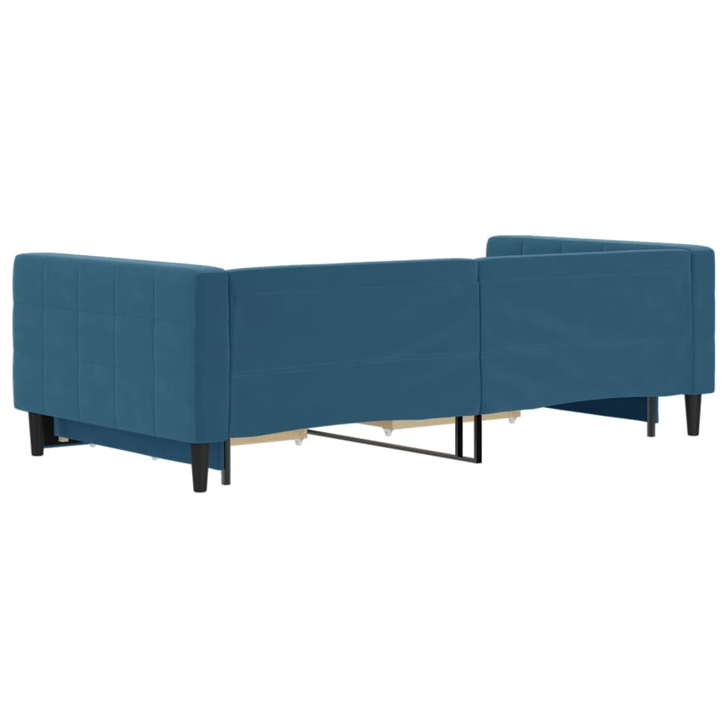 Dieses ausziehbare 2-in-1-Tagesbett, das sowohl als Sofa als auch als Bett dient, ist eine praktische und auffällige Ergänzung zu deinem Wohn- oder Schlafzimmer. Vielseitiges Tagesbett: Das Schlafsofa fungiert tagsüber als Sofa und lässt sich nachts durch Ausziehen des Rollkastens leicht in ein Doppelbett verwandeln - eine praktische Lösung, um Gästen einen bequemen Schlafplatz zu bieten und den Platz zu maximieren.Reichlich Stauraum: Dieses Gästebett verfügt über zwei Schubladen mit Rollen, die reichlich Stauraum für Kleidung, Socken, Spielzeug, Kissen usw. bieten.Weicher Samt und robuste Konstruktion: Dieses Schlafsofa besitzt einen stabilen Rahmen aus Holz und Metall und ist mit weichem und bequemem Samt bezogen.Modernes Design: Das Couchbett weist ein modernes Design auf, das sich durch klare Linien, einen minimalistischen Look sowie Natürlichkeit auszeichnet und deiner Einrichtung eine moderne Note verleiht! Gut zu wissen:Matratzen sind bei diesem Bett nicht im Lieferumfang enthalten. Wir bieten jedoch eine große Auswahl an Matratzen an. Du kannst in unserem Shop nach passenden Matratzen suchen.