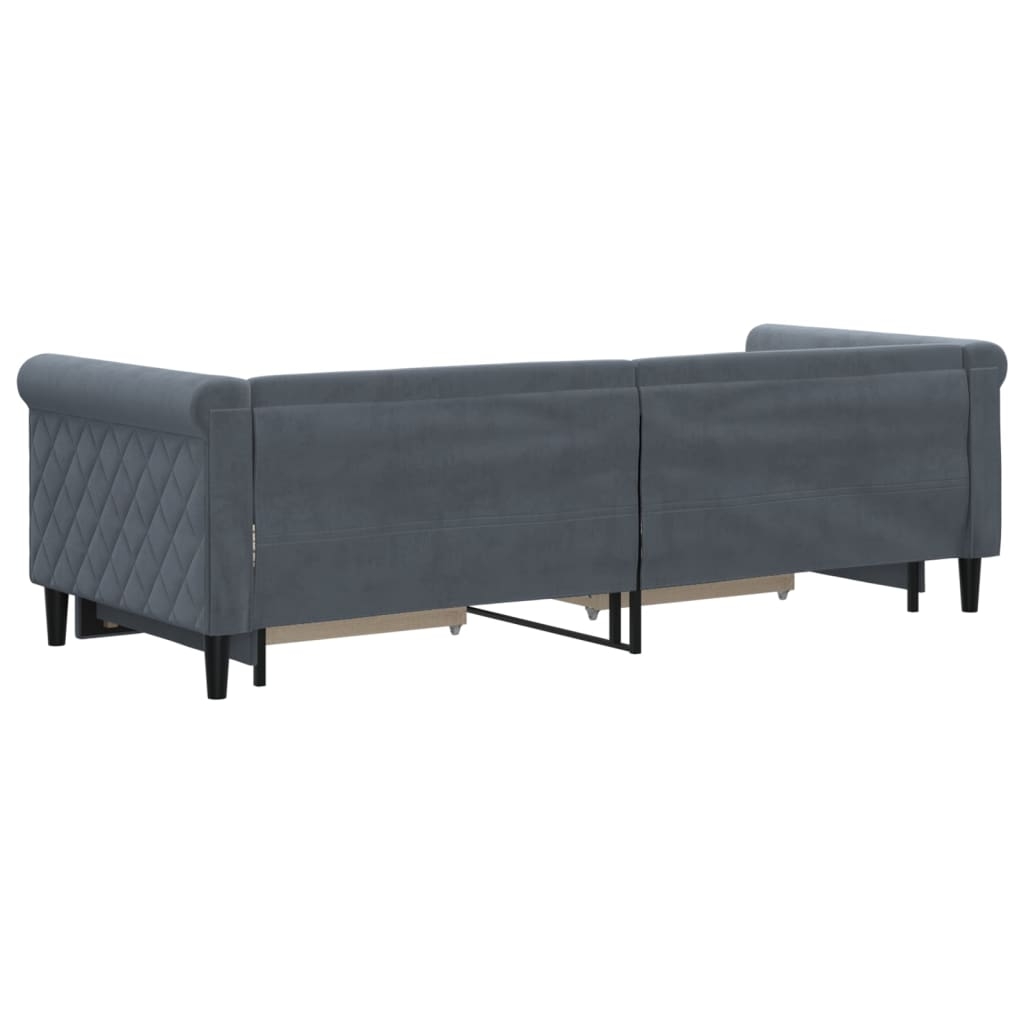 Dieses ausziehbare 2-in-1-Tagesbett, das sowohl als Sofa als auch als Bett dient, ist eine praktische und auffällige Ergänzung zu deinem Wohn- oder Schlafzimmer. Vielseitiges Tagesbett: Das Schlafsofa fungiert tagsüber als Sofa und lässt sich nachts durch Ausziehen des Rollkastens leicht in ein Doppelbett verwandeln - eine praktische Lösung, um Gästen einen bequemen Schlafplatz zu bieten und den Platz zu maximieren.Reichlich Stauraum: Dieses Gästebett verfügt über zwei Schubladen mit Rollen, die reichlich Stauraum für Kleidung, Socken, Spielzeug, Kissen usw. bieten.Weicher Samt und robuste Konstruktion: Dieses Schlafsofa besitzt einen stabilen Rahmen aus Holz und Metall und ist mit weichem und bequemem Samt bezogen.Modernes Design: Das Couchbett weist ein modernes Design auf, das sich durch klare Linien, einen minimalistischen Look sowie Natürlichkeit auszeichnet und deiner Einrichtung eine moderne Note verleiht! Gut zu wissen:Matratzen sind bei diesem Bett nicht im Lieferumfang enthalten. Wir bieten jedoch eine große Auswahl an Matratzen an. Du kannst in unserem Shop nach passenden Matratzen suchen.
