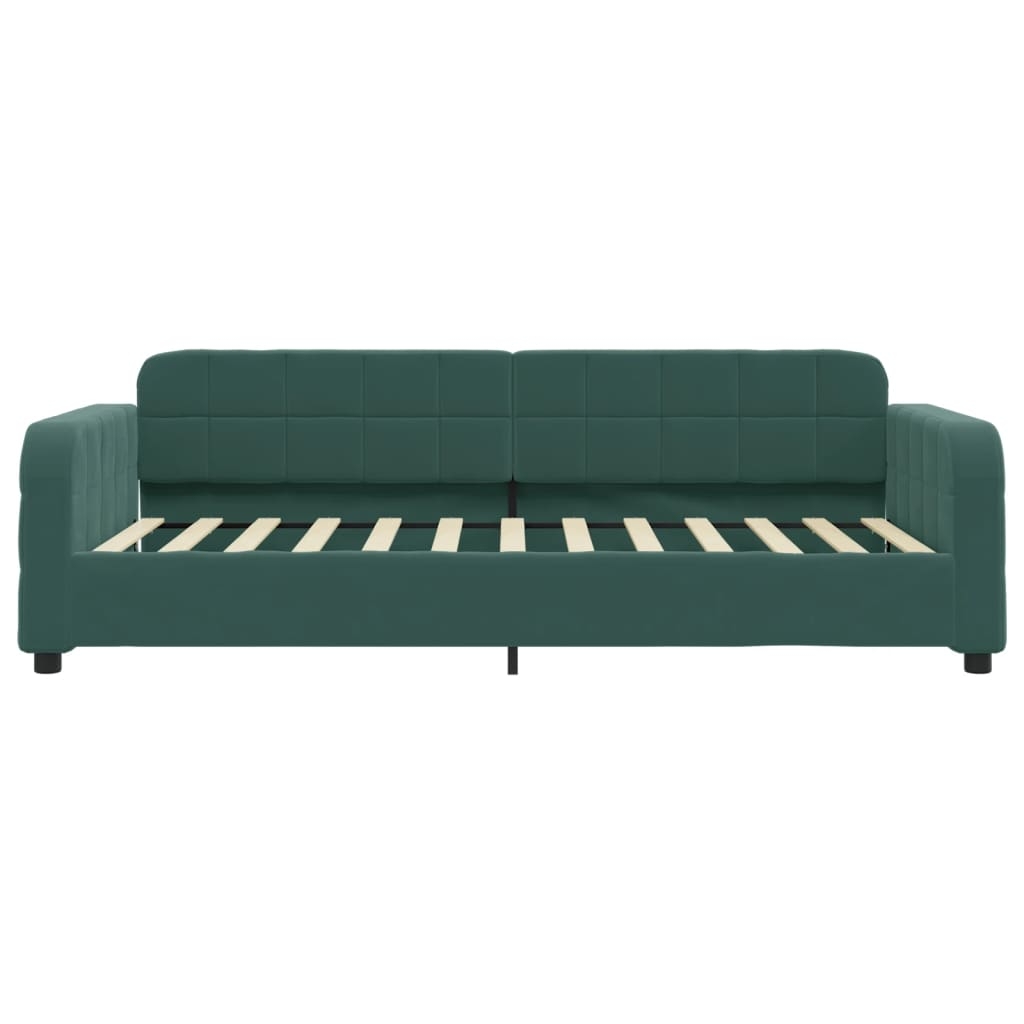 Dieses ausziehbare 2-in-1-Tagesbett, das sowohl als Sofa als auch als Bett dient, ist eine praktische und auffällige Ergänzung zu deinem Wohn- oder Schlafzimmer. Vielseitiges Tagesbett: Das Schlafsofa fungiert tagsüber als Sofa und lässt sich nachts durch Ausziehen des Rollkastens leicht in ein Doppelbett verwandeln - eine praktische Lösung, um Gästen einen bequemen Schlafplatz zu bieten und den Platz zu maximieren. Reichlich Stauraum: Dieses Gästebett verfügt über zwei Schubladen mit Rollen, die reichlich Stauraum für Kleidung, Socken, Spielzeug, Kissen usw. bieten.Weicher Samt und robuste Konstruktion: Dieses Schlafsofa besitzt einen stabilen Rahmen aus Holz und Metall und ist mit weichem und bequemem Samt bezogen. Gut zu wissen:Matratzen sind bei diesem Bett nicht im Lieferumfang enthalten. Wir bieten jedoch eine große Auswahl an Matratzen an. Du kannst in unserem Shop nach passenden Matratzen suchen.