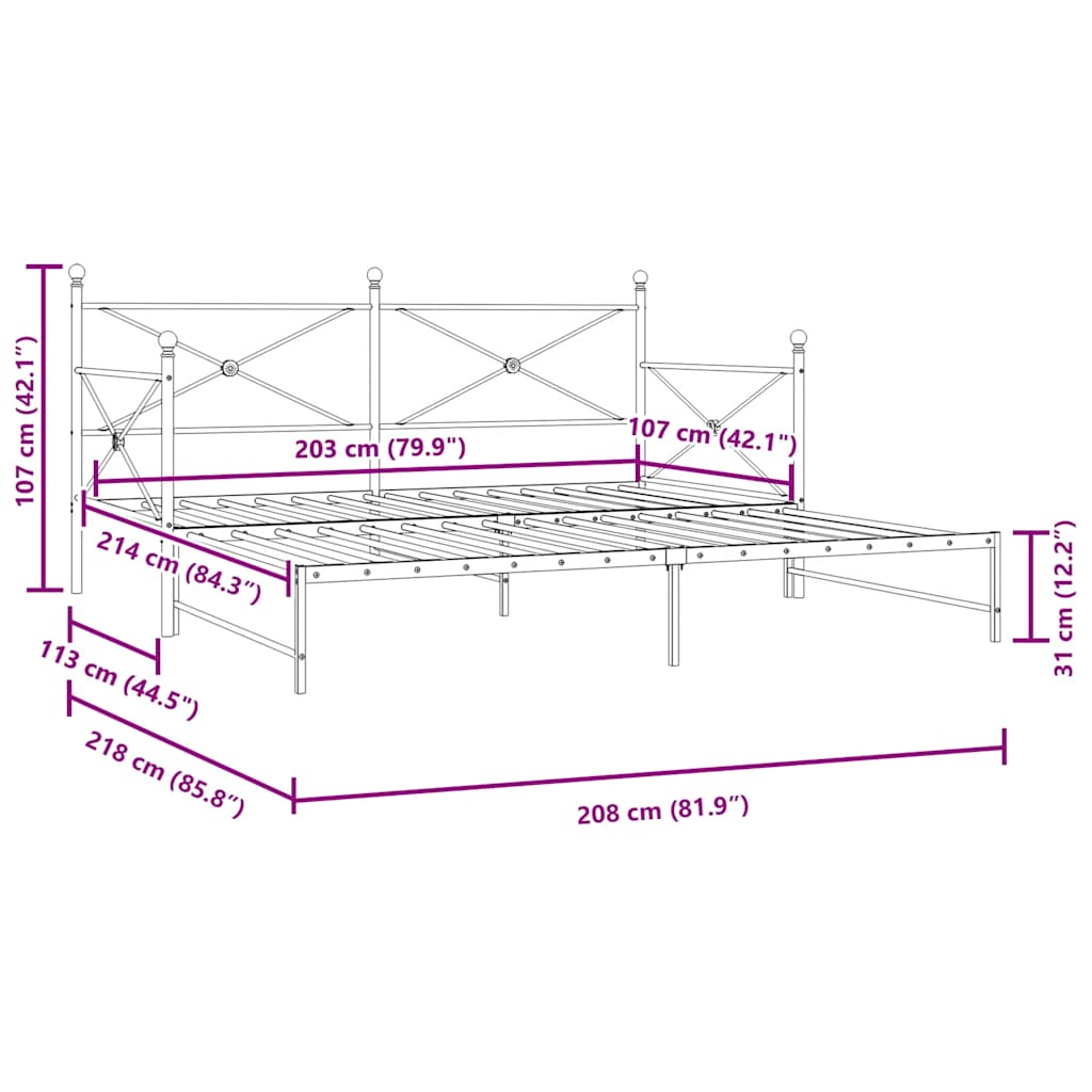 - Bett-Maße (nicht ausgezogen): 208 x 113 x 107 cm (L x B x H)