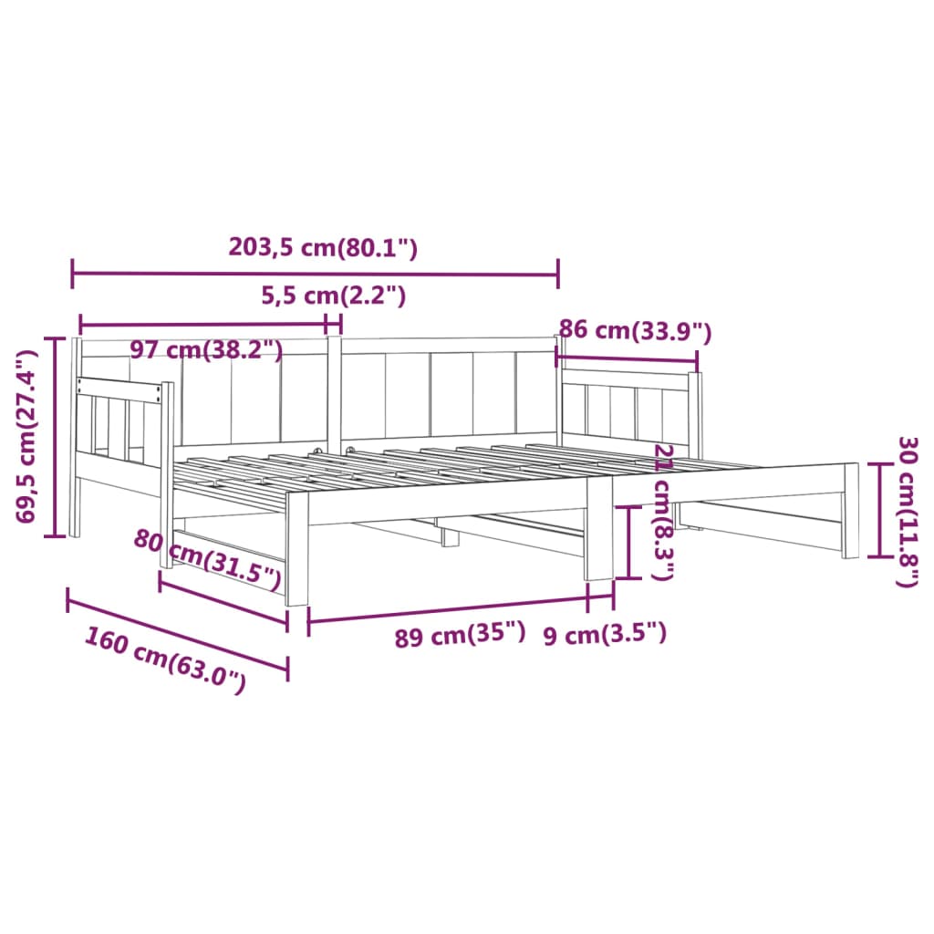 Dieses multifunktionale Tagesbett dient nicht nur tagsüber als Sofa, sondern auch nachts als Bett und ist damit eine hervorragende Wahl für Übernachtungsgäste. Egal, wo es aufgestellt wird, dieses praktische Schlafsofa ist ein echter Hingucker! Massives Kiefernholz: Massives Kiefernholz ist ein wunderschönes Naturmaterial. Kiefernholz weist eine gerade Maserung auf und die Aststellen verleihen dem Material seine charakteristische, rustikale Optik.Umwandelbar: Mit einem ausziehbaren Rollbett versehen, lässt sich das Tagesbett aus Holz tagsüber leicht in eine Couch und nachts in ein bequemes Bett verwandeln.Platzsparend: Dieses Tagesbett aus Massivholz maximiert die verfügbare Bodenfläche und bietet gleichzeitig Schlafplatz für zwei Personen, was es zur idealen Wahl für Personen mit begrenztem Wohnraum macht. Hinweis:Die Lieferung beinhaltet nur einen Bettrahmen. Die Matratze ist nicht enthalten. In unserem Shop finden Sie auch passende Matratzen.