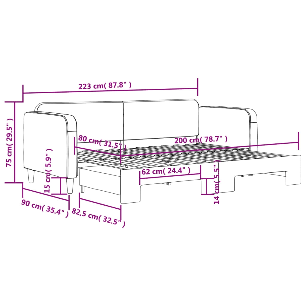 Dieses ausziehbare 2-in-1-Tagesbett, das sowohl als Sofa als auch als Bett dient, ist eine praktische und auffällige Ergänzung zu deinem Wohn- oder Schlafzimmer. Vielseitiges Tagesbett: Das Schlafsofa fungiert tagsüber als Sofa und lässt sich nachts durch Ausziehen des Rollkastens leicht in ein Doppelbett verwandeln - eine praktische Lösung, um Gästen einen bequemen Schlafplatz zu bieten und den Platz zu maximieren.Strapazierfähiger Stoff: Das Gästebett ist mit Stoff bezogen. Stoff weist eine schlichte und saubere Optik auf und ist gleichzeitig atmungsaktiv und langlebig.Robuste Konstruktion: Der Rahmen aus Holz und Metall verleiht dem Schlafsofa Robustheit und Stabilität. Gut zu wissen:Die Matratzen sind nicht im Lieferumfang dieses Bettes enthalten. Wir bieten jedoch eine große Auswahl an Matratzen an. Du kannst in unserem Shop nach passenden Matratzen suchen.