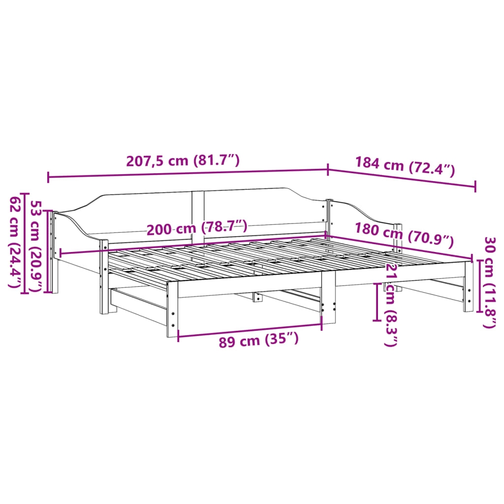 Dieses ausziehbare 2-in-1-Tagesbett, das sowohl als Sofa als auch als Bett dient, ist eine praktische und auffällige Ergänzung zu deinem Wohn- oder Schlafzimmer. Stabiles und langlebiges Gestell: Massives Kiefernholz ist für seine Stärke und Haltbarkeit bekannt. Seine gerade Maserung und die charakteristischen Aststellen tragen zu seinem rustikalen Charme bei.Latten für optimale Unterstützung: Das Sofabett ist mit Latten ausgestattet, die deine Matratze optimal stützen und auch für Atmungsaktivität sorgen.Vielseitiges Tagesbett: Das Schlafsofa fungiert tagsüber als Sofa und lässt sich nachts durch Ausziehen des Rollkastens leicht in ein Doppelbett verwandeln - eine praktische Lösung, um Gästen einen bequemen Schlafplatz zu bieten und den Platz zu maximieren.Zusätzlicher Stauraum: Zu deiner Bequemlichkeit bietet das Bett zusätzlichen Stauraum unter der Liegefläche, um deine Aufbewahrungsboxen außer Sichtweite zu halten. Gut zu wissen:Matratzen sind bei diesem Bett nicht im Lieferumfang enthalten. Wir bieten jedoch eine große Auswahl an Matratzen an. Du kannst in unserem Shop nach passenden Matratzen suchen.