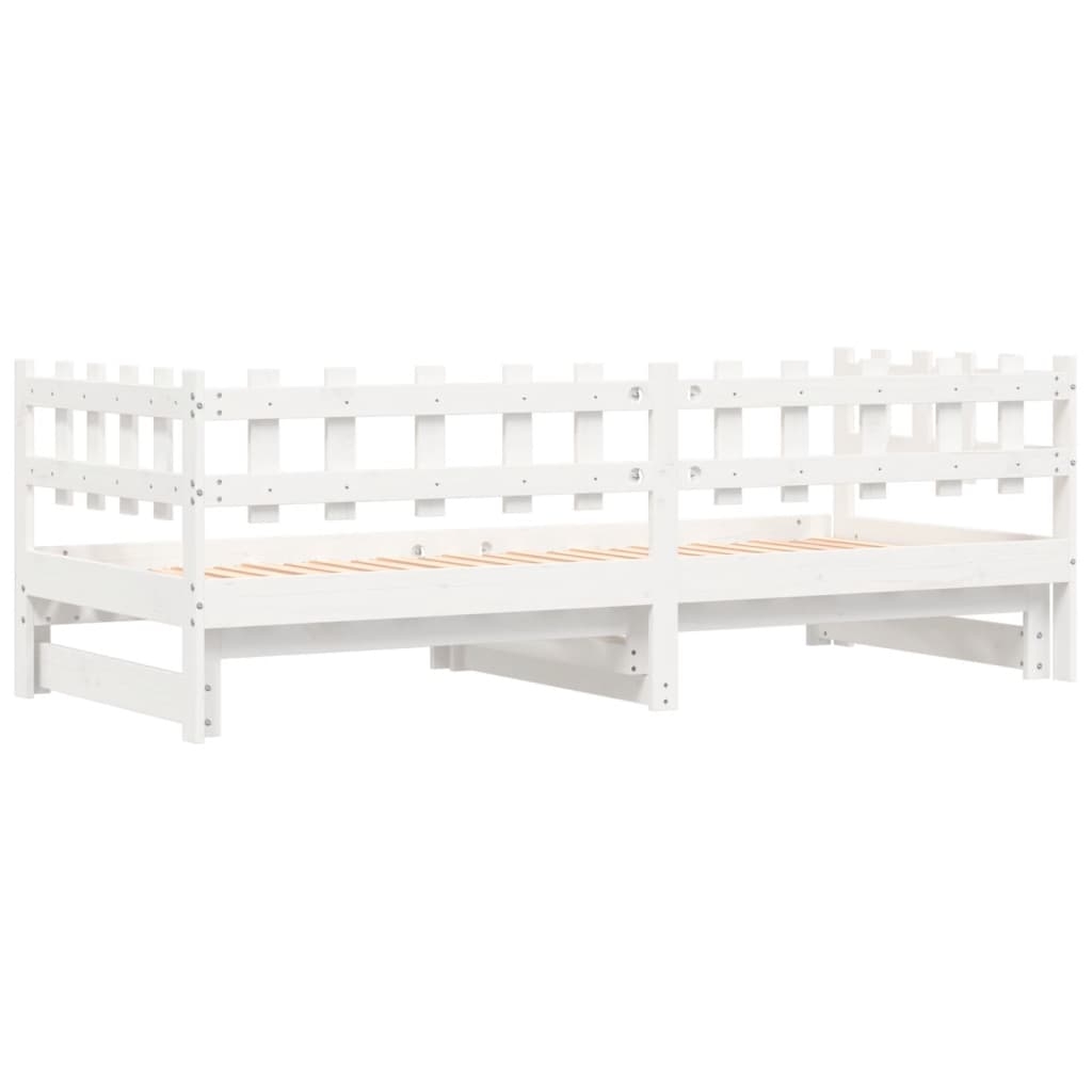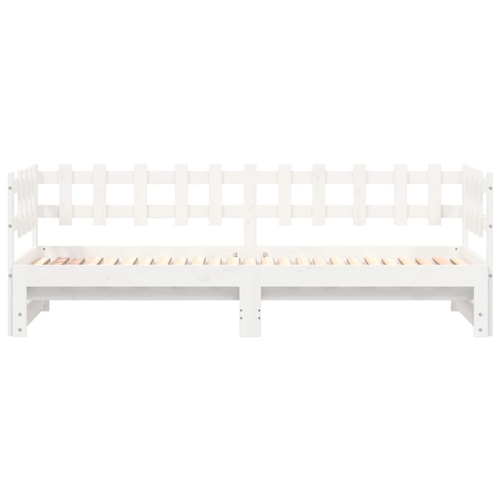 Dieses vielseitige Tagesbett aus Holz lässt sich als Bett in deinem Schlafzimmer einsetzen, kann aber auch als Sofa im Wohnzimmer dienen. Massives Kiefernholz: Massives Kiefernholz ist ein wunderschönes Naturmaterial. Kiefernholz weist eine gerade Maserung auf und die Aststellen verleihen dem Material seine charakteristische, rustikale Optik. Aus massivem Kiefernholz gefertigt, ist dieses Gästebett stabil und langlebig. Latten-Design: Der Lattenrost aus Holz sorgt für eine bessere Luftzirkulation, um die Matratze länger frisch zu halten, verbessert die Gewichtsverteilung und sorgt für Stabilität. Einfacher Gebrauch: Dieses Gästebett ermöglicht eine komfortable Nutzung, da es weder eine Ferderkernbox noch eine Basis erfordert. Stelle einfach die Matratze darüber und genieße einen erholsamen Schlaf oder eine komfortable Sitzposition! Ausziehbar: Dieses Tagesbett aus Holz kann tagsüber als Sofa und nachts als Bett verwendet werden, um Übernachtungsgästen einen gemütlichen Schlafplatz zu bieten und gleichzeitig Platz zu sparen. Gut zu wissen:Matratzen sind bei diesem Bett nicht im Lieferumfang enthalten. Wir bieten jedoch eine große Auswahl an Matratzen an. Du kannst in unserem Shop nach passenden Matratzen suchen.