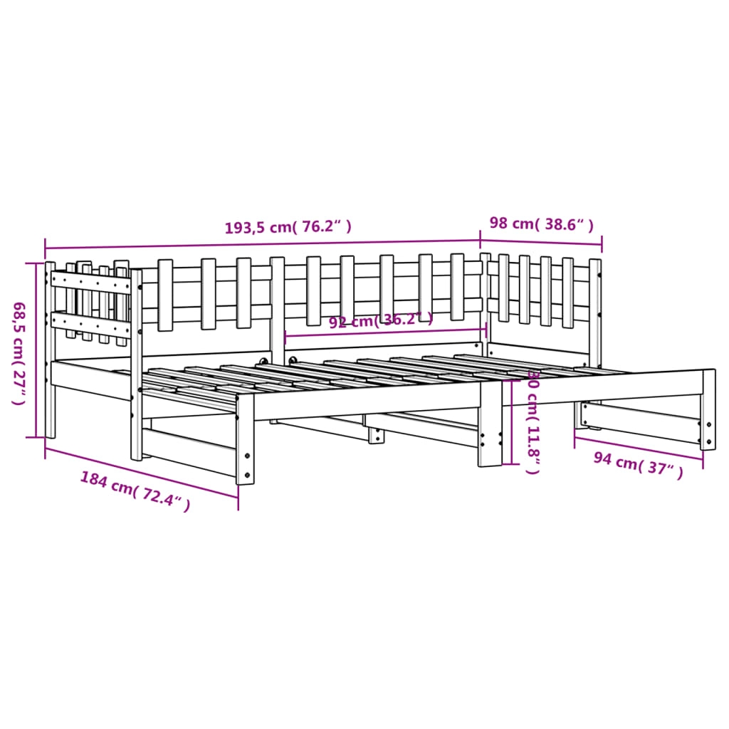 - Abmessungen des Tagesbettes (nicht ausgezogen): 193,5 x 98 x 68,5 cm (L x B x H)