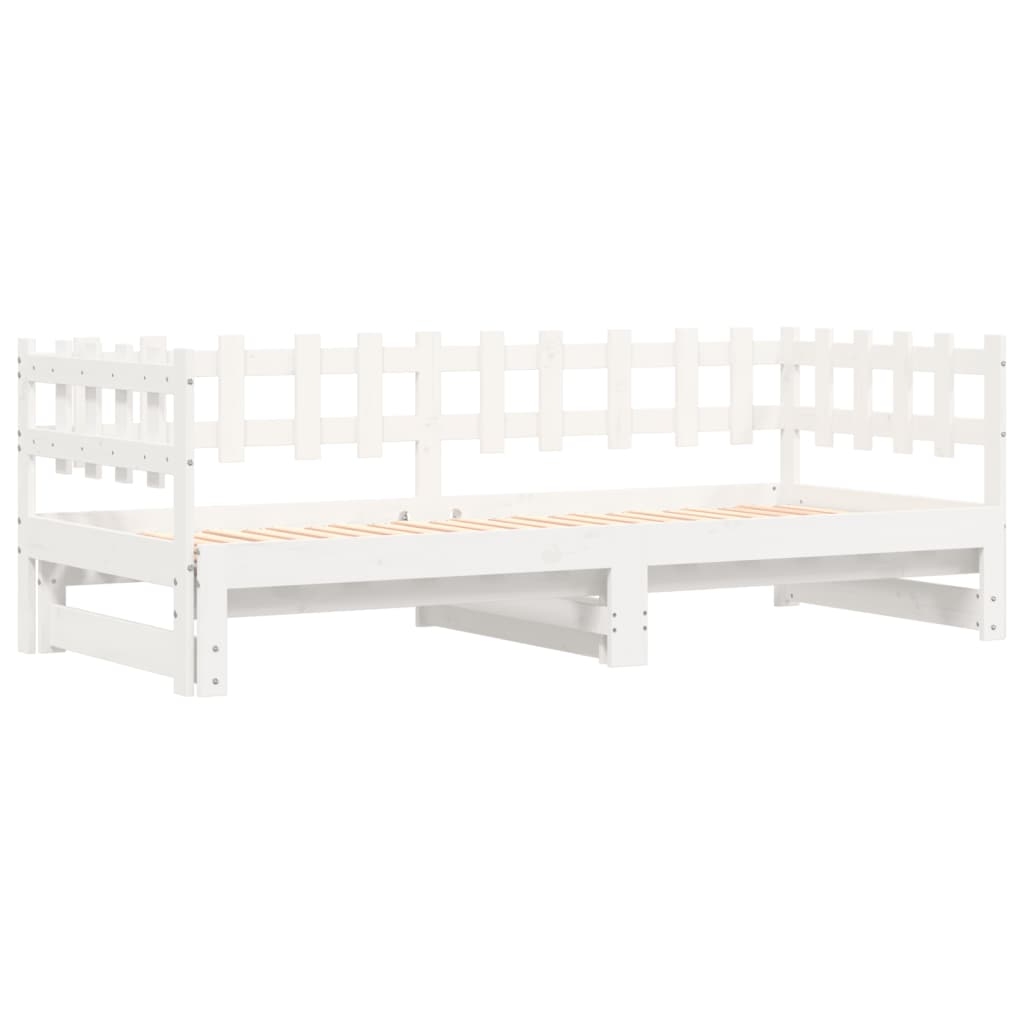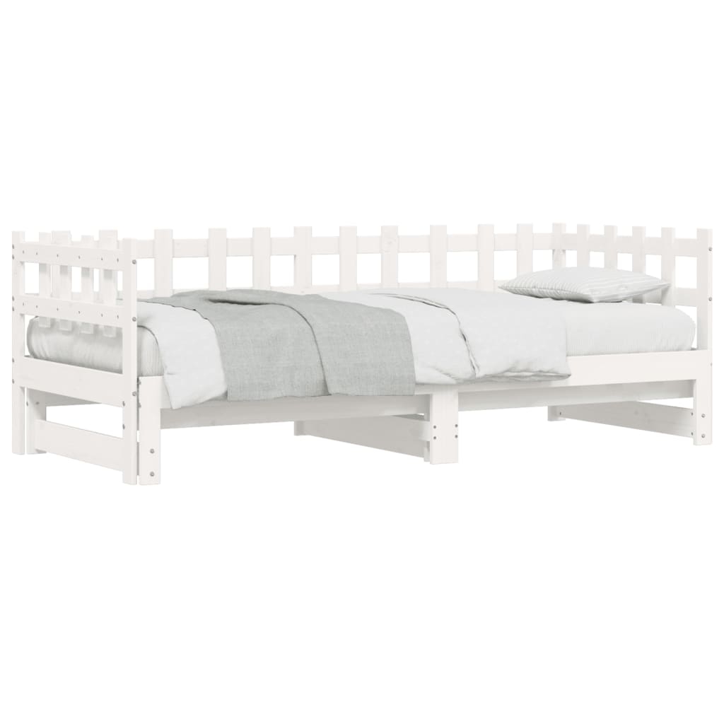 Dieses vielseitige Tagesbett aus Holz lässt sich als Bett in deinem Schlafzimmer einsetzen, kann aber auch als Sofa im Wohnzimmer dienen. Massives Kiefernholz: Massives Kiefernholz ist ein wunderschönes Naturmaterial. Kiefernholz weist eine gerade Maserung auf und die Aststellen verleihen dem Material seine charakteristische, rustikale Optik. Aus massivem Kiefernholz gefertigt, ist dieses Gästebett stabil und langlebig. Latten-Design: Der Lattenrost aus Holz sorgt für eine bessere Luftzirkulation, um die Matratze länger frisch zu halten, verbessert die Gewichtsverteilung und sorgt für Stabilität. Einfacher Gebrauch: Dieses Gästebett ermöglicht eine komfortable Nutzung, da es weder eine Ferderkernbox noch eine Basis erfordert. Stelle einfach die Matratze darüber und genieße einen erholsamen Schlaf oder eine komfortable Sitzposition! Ausziehbar: Dieses Tagesbett aus Holz kann tagsüber als Sofa und nachts als Bett verwendet werden, um Übernachtungsgästen einen gemütlichen Schlafplatz zu bieten und gleichzeitig Platz zu sparen. Gut zu wissen:Matratzen sind bei diesem Bett nicht im Lieferumfang enthalten. Wir bieten jedoch eine große Auswahl an Matratzen an. Du kannst in unserem Shop nach passenden Matratzen suchen.