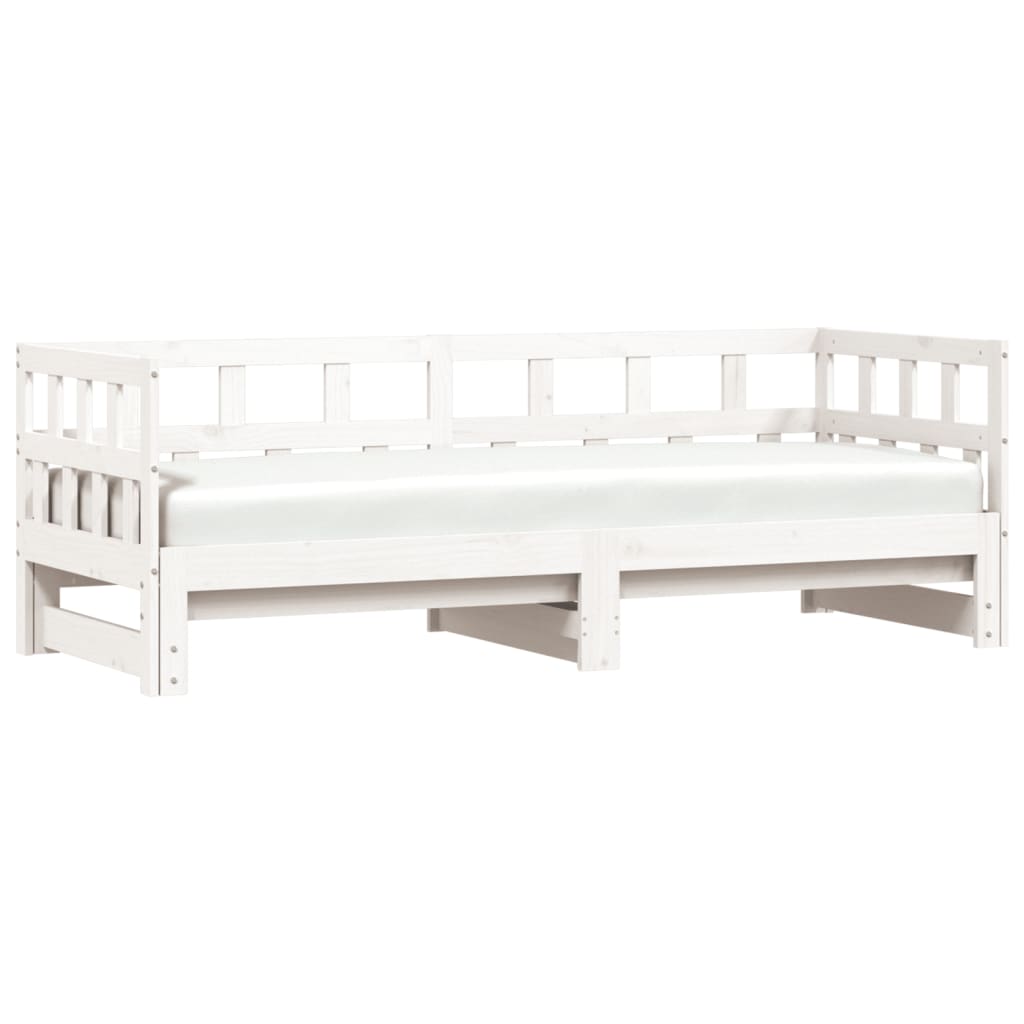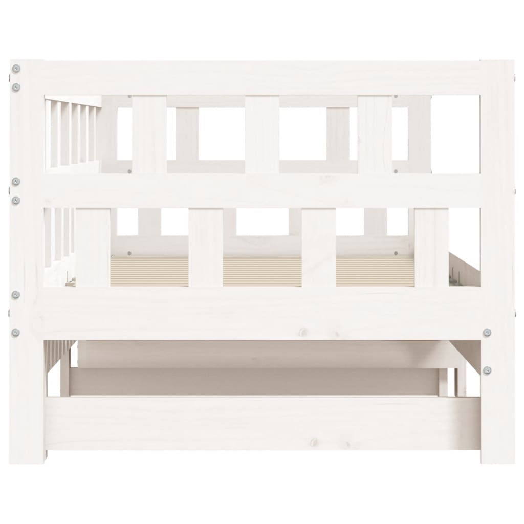 Dieses ausziehbare 2-in-1-Tagesbett, das sowohl als Sofa als auch als Bett dient, ist eine praktische und auffällige Ergänzung zu deinem Wohn- oder Schlafzimmer. Massives Kiefernholz: Massives Kiefernholz ist ein wunderschönes Naturmaterial. Kiefernholz weist eine gerade Maserung auf und die Aststellen verleihen dem Material seine charakteristische, rustikale Optik. Aus massivem Kiefernholz gefertigt, ist dieses Gästebett stabil und langlebig.Vielseitiges Tagesbett: Das Schlafsofa fungiert tagsüber als Sofa und lässt sich nachts durch Ausziehen des Rollkastens leicht in ein Doppelbett verwandeln - eine praktische Lösung, um Gästen einen bequemen Schlafplatz zu bieten und den Platz zu maximieren.Zusätzlicher Stauraum: Unter dem Tagesbett gibt es zusätzlichen Platz für Schubladen oder Aufbewahrungsboxen, um Kleidung, Socken, Spielzeug, Kissen usw. ordentlich zu verstauen. Gut zu wissen:Die Lieferung beinhaltet nur einen Bettrahmen. Die Matratze ist nicht enthalten. In unserem Shop finden Sie auch passende Matratzen.