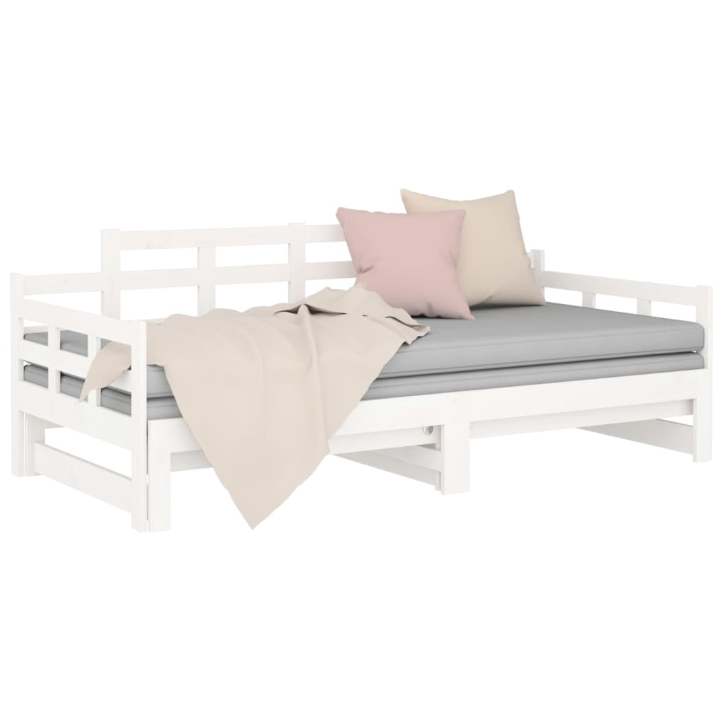 Dieses Tagesbett aus Holz bietet unerwarteten Übernachtungsgästen einen perfekten Schlafplatz und stellt tagsüber eine bequeme Sitzgelegenheit dar. Massives Kiefernholz: Massives Kiefernholz ist ein wunderschönes Naturmaterial. Kiefernholz weist eine gerade Maserung auf und die Aststellen verleihen dem Material seine charakteristische, rustikale Optik.Multifunktionales Design: Mit dem ausziehbaren Design lässt sich dieses Tagesbettgestell tagsüber leicht in ein Sofa im Wohnzimmer und nachts in ein bequemes Bett zum Schlafen verwandeln.Platzsparend: Dieses Tagesbett aus robustem Holz kann den Platz optimal ausnutzen und bietet gleichzeitig Schlafplätze für zwei Personen oder eine Ablage für Kleidung, Spielzeug und Bettdecken, was es zur idealen Wahl für Menschen mit begrenztem Wohnraum macht. Hinweis:Die Lieferung umfasst nur einen Bettrahmen. Die Matratze ist nicht im Lieferumfang enthalten. Die passenden Matratzen finden Sie in unserem Shop.Dieser Bettrahmen ist für eine Matratze mit einer Größe von 90 x 200 cm geeignet.