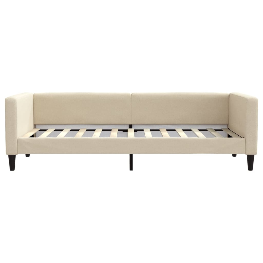 Dieses 2-in-1-Tagesbett, das sowohl als Sofa als auch als Bett dient, ist eine praktische und auffällige Ergänzung zu deinem Wohn- oder Schlafzimmer. Vielseitiges Tagesbett: Das Schlafsofa kann tagsüber als Sofa und nachts als Bett verwendet werden, um Übernachtungsgästen einen gemütlichen Schlafplatz zu bieten.Bequemes Erlebnis: Das Tagesbett ist mit Stoff bezogen. Stoff zeichnet sich durch eine schlichte und saubere Optik aus und ist gleichzeitig atmungsaktiv und langlebig. Zudem sind die Rückenlehne und die Armlehnen mit Schaumstoff gepolstert, um höchsten Sitzkomfort zu bieten.Robustes und stabiles Gestell: Das Hauptgestell des Schlafsofas besteht aus Metall und Massivholz, was das Sofa sehr robust und langlebig macht. Die Latten aus Sperrholz ermöglichen nicht nur eine bessere Luftzirkulation, damit die Matratze länger frisch bleibt, sondern sorgen auch für eine bessere Tragfähigkeit und Stabilität.Modernes Design: Das Couchbett weist ein modernes Design auf, das sich durch klare Linien, einen minimalistischen Look sowie Natürlichkeit auszeichnet und deiner Einrichtung eine moderne Note verleiht! Gut zu wissen:Bei diesem Bett ist keine Matratze im Lieferumfang enthalten. Wir bieten jedoch eine große Auswahl an Matratzen an. Du kannst in unserem Shop nach einer passenden Matratze suchen.