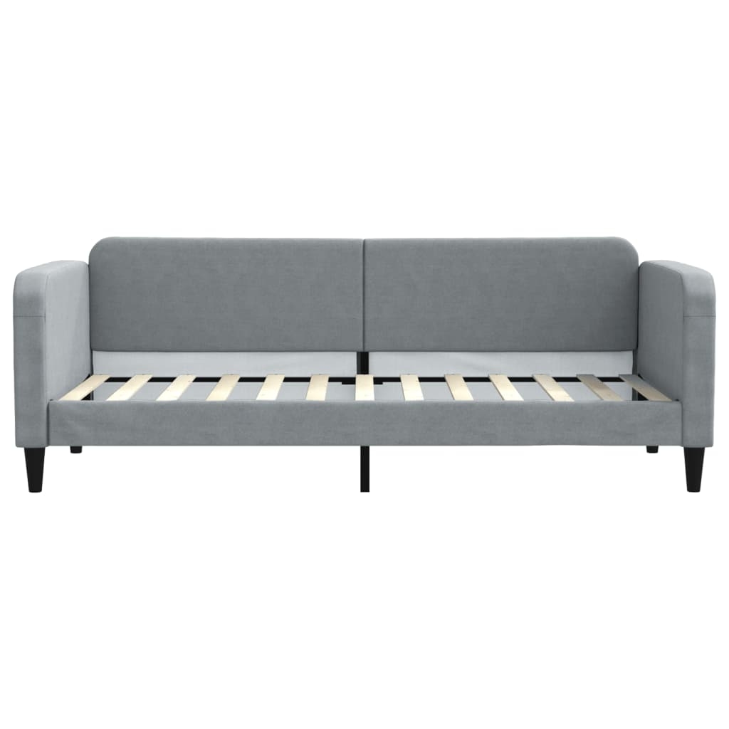 Dieses 2-in-1-Tagesbett, das sowohl als Sofa als auch als Bett dient, ist eine praktische und auffällige Ergänzung zu deinem Wohn- oder Schlafzimmer. Vielseitiges Tagesbett: Das Schlafsofa kann tagsüber als Sofa und nachts als Bett verwendet werden, um Übernachtungsgästen einen gemütlichen Schlafplatz zu bieten.Bequemes Erlebnis: Das Tagesbett ist mit Stoff bezogen. Stoff zeichnet sich durch eine schlichte und saubere Optik aus und ist gleichzeitig atmungsaktiv und langlebig. Zudem sind die Rückenlehne und die Armlehnen mit Schaumstoff gepolstert, um höchsten Sitzkomfort zu bieten.Robustes und stabiles Gestell: Das Hauptgestell des Schlafsofas besteht aus Metall und Massivholz, was das Sofa sehr robust und langlebig macht. Die Latten aus Sperrholz ermöglichen nicht nur eine bessere Luftzirkulation, damit die Matratze länger frisch bleibt, sondern sorgen auch für eine bessere Tragfähigkeit und Stabilität.Modernes Design: Das Couchbett weist ein modernes Design auf, das sich durch klare Linien, einen minimalistischen Look sowie Natürlichkeit auszeichnet und deiner Einrichtung eine moderne Note verleiht! Gut zu wissen:Bei diesem Bett ist keine Matratze im Lieferumfang enthalten. Wir bieten jedoch eine große Auswahl an Matratzen an. Du kannst in unserem Shop nach einer passenden Matratze suchen.