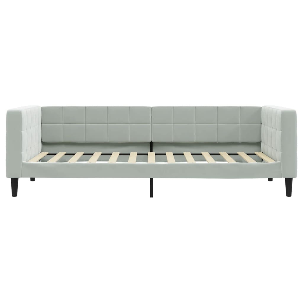 Dieses 2-in-1-Tagesbett, das sowohl als Sofa als auch als Bett dient, ist eine praktische und auffällige Ergänzung zu deinem Wohn- oder Schlafzimmer. Vielseitiges Tagesbett: Das Schlafsofa kann tagsüber als Sofa und nachts als Bett verwendet werden, um Übernachtungsgästen einen gemütlichen Schlafplatz zu bieten.Bequemes Erlebnis: Das Tagesbett ist mit Samt bezogen, der sich weich und angenehm auf der Haut anfühlt. Zudem sind die Rückenlehne und die Armlehnen des Gästebettes mit Schaumstoff gepolstert, um höchsten Sitzkomfort zu bieten.Robustes und stabiles Gestell: Das Hauptgestell des Schlafsofas besteht aus Metall und Massivholz, was das Sofa sehr robust und langlebig macht. Die Latten aus Sperrholz ermöglichen nicht nur eine bessere Luftzirkulation, damit die Matratze länger frisch bleibt, sondern sorgen auch für eine bessere Tragfähigkeit und Stabilität.Modernes Design: Das Couchbett weist ein modernes Design auf, das sich durch klare Linien, einen minimalistischen Look sowie Natürlichkeit auszeichnet und deiner Einrichtung eine moderne Note verleiht! Gut zu wissen:Bei diesem Bett ist keine Matratze im Lieferumfang enthalten. Wir bieten jedoch eine große Auswahl an Matratzen an. Du kannst in unserem Shop nach einer passenden Matratze suchen.