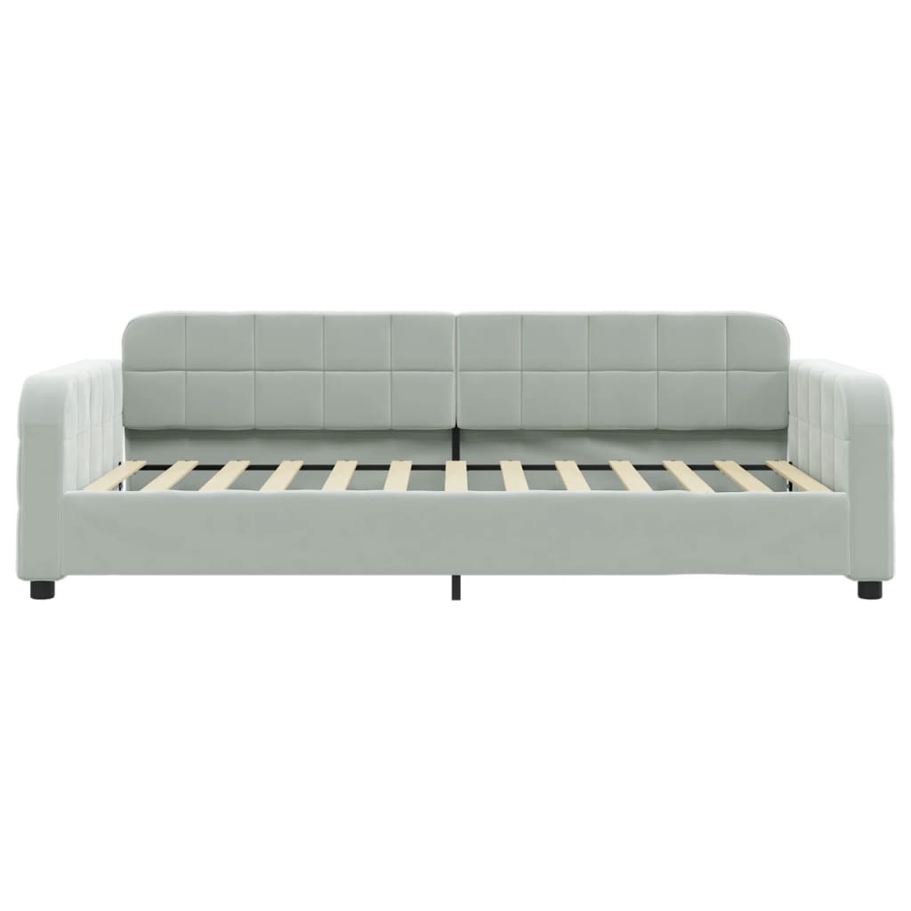 Dieses 2-in-1-Tagesbett, das sowohl als Sofa als auch als Bett dient, ist eine praktische und auffällige Ergänzung zu deinem Wohn- oder Schlafzimmer. Vielseitiges Tagesbett: Das Schlafsofa kann tagsüber als Sofa und nachts als Bett verwendet werden, um Übernachtungsgästen einen gemütlichen Schlafplatz zu bieten.Bequemes Erlebnis: Das Tagesbett ist mit Samt bezogen, der sich weich und angenehm auf der Haut anfühlt. Zudem sind die Rückenlehne und die Armlehnen des Gästebettes mit Schaumstoff gepolstert, um höchsten Sitzkomfort zu bieten.Robustes und stabiles Gestell: Das Hauptgestell des Schlafsofas besteht aus Metall und Massivholz, was das Sofa sehr robust und langlebig macht. Die Latten aus Sperrholz ermöglichen nicht nur eine bessere Luftzirkulation, damit die Matratze länger frisch bleibt, sondern sorgen auch für eine bessere Tragfähigkeit und Stabilität.Modernes Design: Das Couchbett weist ein modernes Design auf, das sich durch klare Linien, einen minimalistischen Look sowie Natürlichkeit auszeichnet und deiner Einrichtung eine moderne Note verleiht! Gut zu wissen:Bei diesem Bett ist keine Matratze im Lieferumfang enthalten. Wir bieten jedoch eine große Auswahl an Matratzen an. Du kannst in unserem Shop nach einer passenden Matratze suchen.