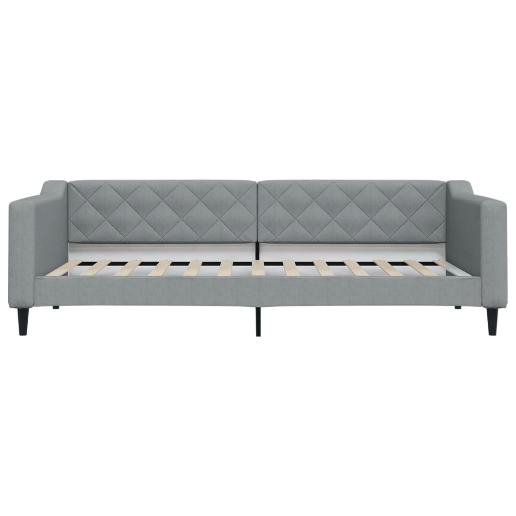 Dieses 2-in-1-Tagesbett, das sowohl als Sofa als auch als Bett dient, ist eine praktische und auffällige Ergänzung zu deinem Wohn- oder Schlafzimmer. Vielseitiges Tagesbett: Das Schlafsofa kann tagsüber als Sofa und nachts als Bett verwendet werden, um Übernachtungsgästen einen gemütlichen Schlafplatz zu bieten.Bequemes Erlebnis: Das Tagesbett ist mit Stoff bezogen. Stoff zeichnet sich durch eine schlichte und saubere Optik aus und ist gleichzeitig atmungsaktiv und langlebig. Zudem sind die Rückenlehne und die Armlehnen mit Schaumstoff gepolstert, um höchsten Sitzkomfort zu bieten.Robustes und stabiles Gestell: Das Hauptgestell des Schlafsofas besteht aus Metall und Massivholz, was das Sofa sehr robust und langlebig macht. Die Latten aus Sperrholz ermöglichen nicht nur eine bessere Luftzirkulation, damit die Matratze länger frisch bleibt, sondern sorgen auch für eine bessere Tragfähigkeit und Stabilität.Modernes Design: Das Couchbett weist ein modernes Design auf, das sich durch klare Linien, einen minimalistischen Look sowie Natürlichkeit auszeichnet und deiner Einrichtung eine moderne Note verleiht! Gut zu wissen:Bei diesem Bett ist keine Matratze im Lieferumfang enthalten. Wir bieten jedoch eine große Auswahl an Matratzen an. Du kannst in unserem Shop nach einer passenden Matratze suchen.