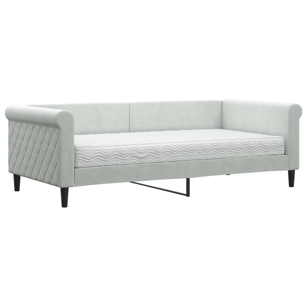 Dieses 2-in-1-Tagesbett mit Matratze, das sowohl als Sofa als auch als Bett dient, ist eine praktische und auffällige Ergänzung zu deinem Wohn- oder Schlafzimmer. Vielseitiges Tagesbett: Das Schlafsofa kann tagsüber als Sofa und nachts als Bett verwendet werden, um Übernachtungsgästen einen gemütlichen Schlafplatz zu bieten.Komfortable Schaumstoffmatratze: Dieses Bett wird samt einer Schaumstoffmatratze geliefert, die maximalen Halt und optimalen Komfort bietet.Weicher Samt und robuste Konstruktion: Dieses Schlafsofa besitzt einen stabilen Rahmen aus Holz und Metall und ist mit weichem und bequemem Samt bezogen.Modernes Design: Das Couchbett weist ein modernes Design auf, das sich durch klare Linien, einen minimalistischen Look sowie Natürlichkeit auszeichnet und deiner Einrichtung eine moderne Note verleiht!