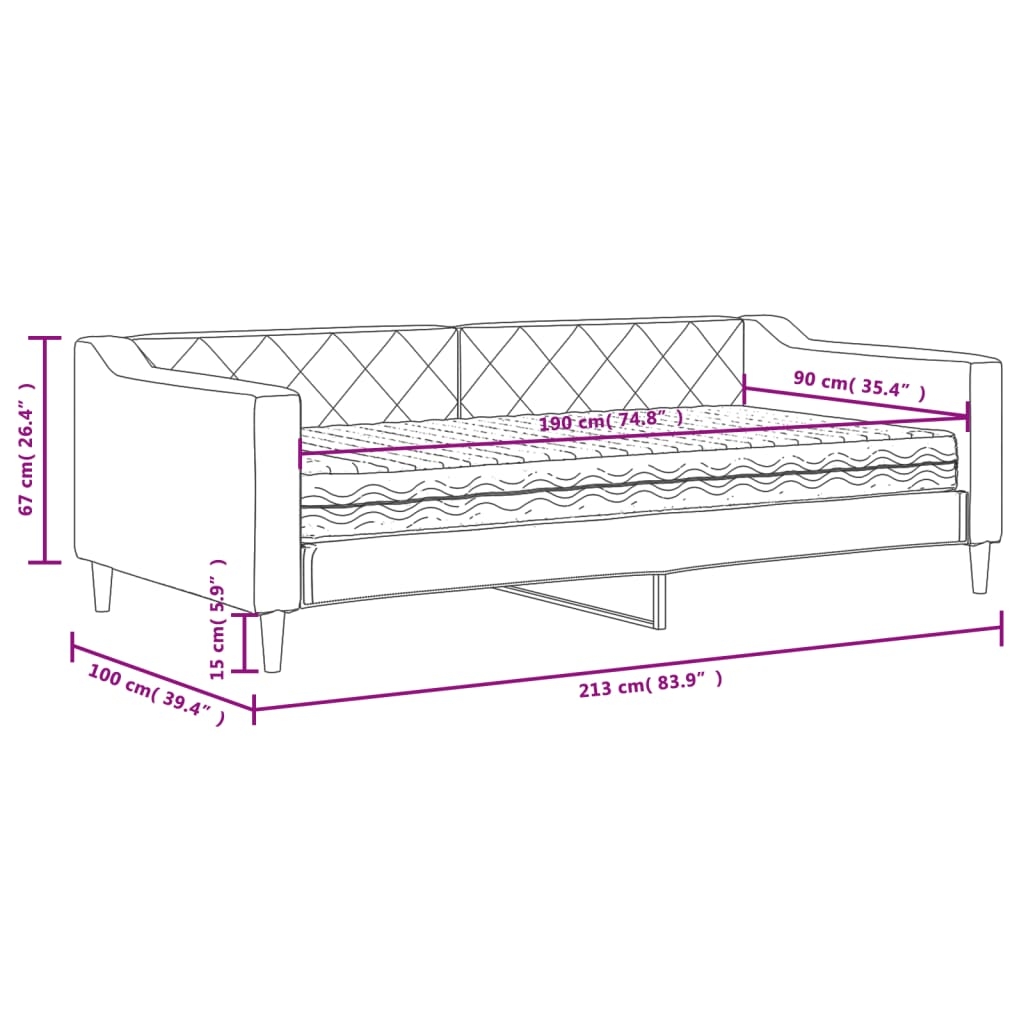Dieses 2-in-1-Tagesbett mit Matratze, das sowohl als Sofa als auch als Bett dient, ist eine praktische und auffällige Ergänzung zu deinem Wohn- oder Schlafzimmer. Vielseitiges Tagesbett: Das Schlafsofa kann tagsüber als Sofa und nachts als Bett verwendet werden, um Übernachtungsgästen einen gemütlichen Schlafplatz zu bieten.Komfortable Schaumstoffmatratze: Dieses Bett wird samt einer Schaumstoffmatratze geliefert, die maximalen Halt und optimalen Komfort bietet.Strapazierfähiger Stoff und robuste Konstruktion: Dieses Tagesbettsofa besitzt einen stabilen Rahmen aus Holz und Metall und ist mit strapazierfähigem und bequemem Stoff bezogen.Modernes Design: Das Sofabett weist ein modernes Design auf, das sich durch klare Linien und einen minimalistischen Look auszeichnet und deiner Einrichtung eine moderne Note verleihen wird!