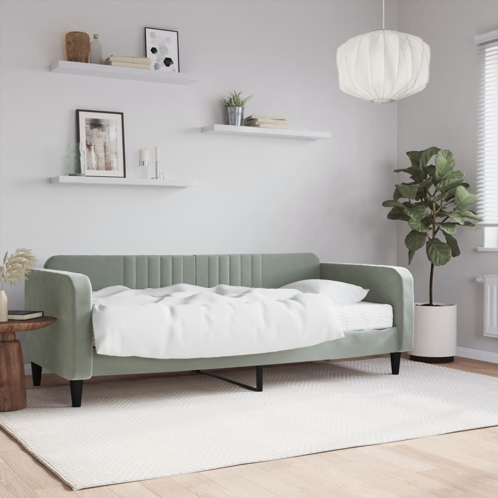 Dieses 2-in-1-Tagesbett mit Matratze, das sowohl als Sofa als auch als Bett dient, ist eine praktische und auffällige Ergänzung zu deinem Wohn- oder Schlafzimmer. Vielseitiges Tagesbett: Das Schlafsofa kann tagsüber als Sofa und nachts als Bett verwendet werden, um Übernachtungsgästen einen gemütlichen Schlafplatz zu bieten.Komfortable Schaumstoffmatratze: Dieses Bett wird samt einer Schaumstoffmatratze geliefert, die maximalen Halt und optimalen Komfort bietet.Weicher Samt und robuste Konstruktion: Dieses Schlafsofa besitzt einen stabilen Rahmen aus Holz und Metall und ist mit weichem und bequemem Samt bezogen.