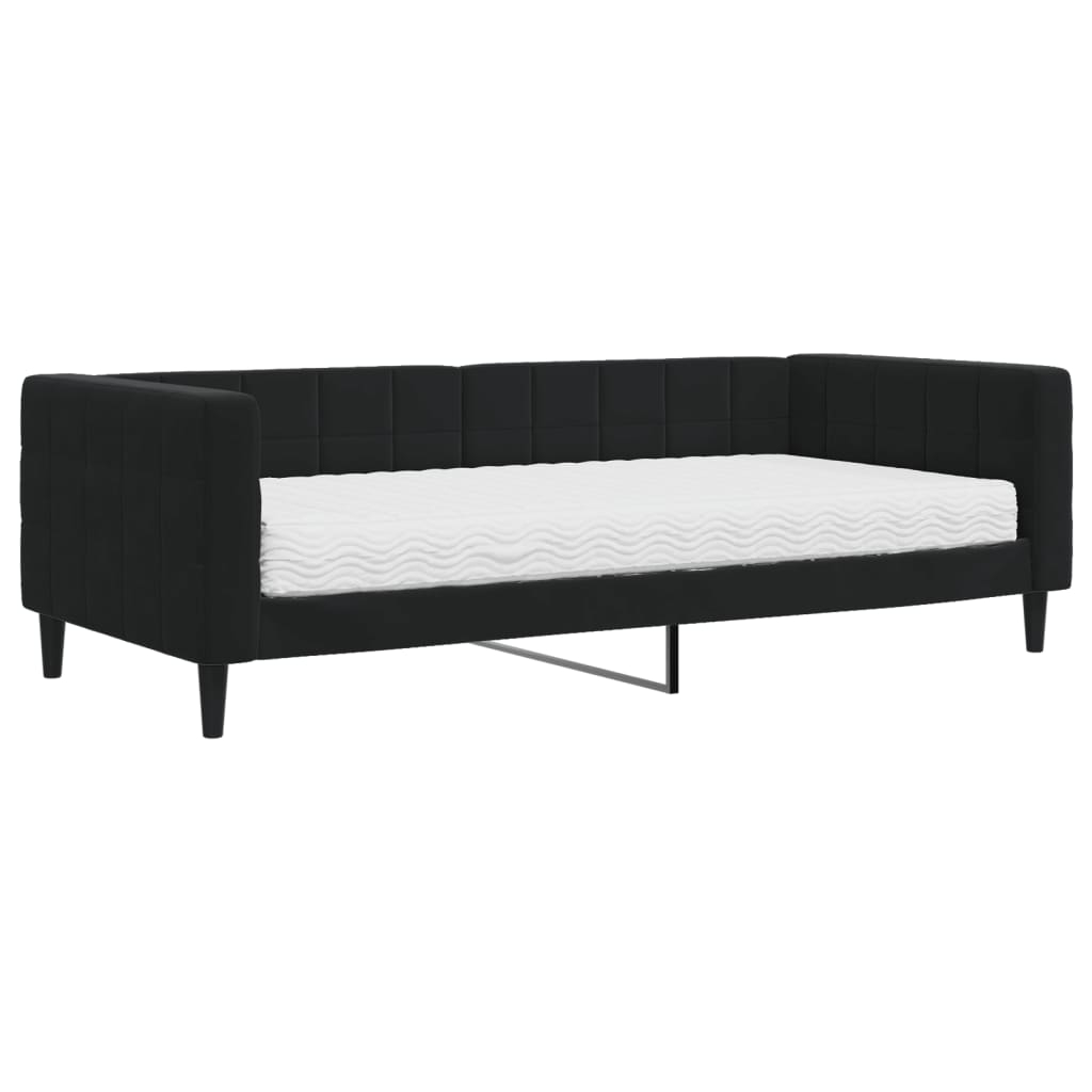 Dieses 2-in-1-Tagesbett mit Matratze, das sowohl als Sofa als auch als Bett dient, ist eine praktische und auffällige Ergänzung zu deinem Wohn- oder Schlafzimmer. Vielseitiges Tagesbett: Das Schlafsofa kann tagsüber als Sofa und nachts als Bett verwendet werden, um Übernachtungsgästen einen gemütlichen Schlafplatz zu bieten.Komfortable Schaumstoffmatratze: Dieses Bett wird samt einer Schaumstoffmatratze geliefert, die maximalen Halt und optimalen Komfort bietet.Weicher Samt und robuste Konstruktion: Dieses Schlafsofa besitzt einen stabilen Rahmen aus Holz und Metall und ist mit weichem und bequemem Samt bezogen.Modernes Design: Das Couchbett weist ein modernes Design auf, das sich durch klare Linien, einen minimalistischen Look sowie Natürlichkeit auszeichnet und deiner Einrichtung eine moderne Note verleiht!
