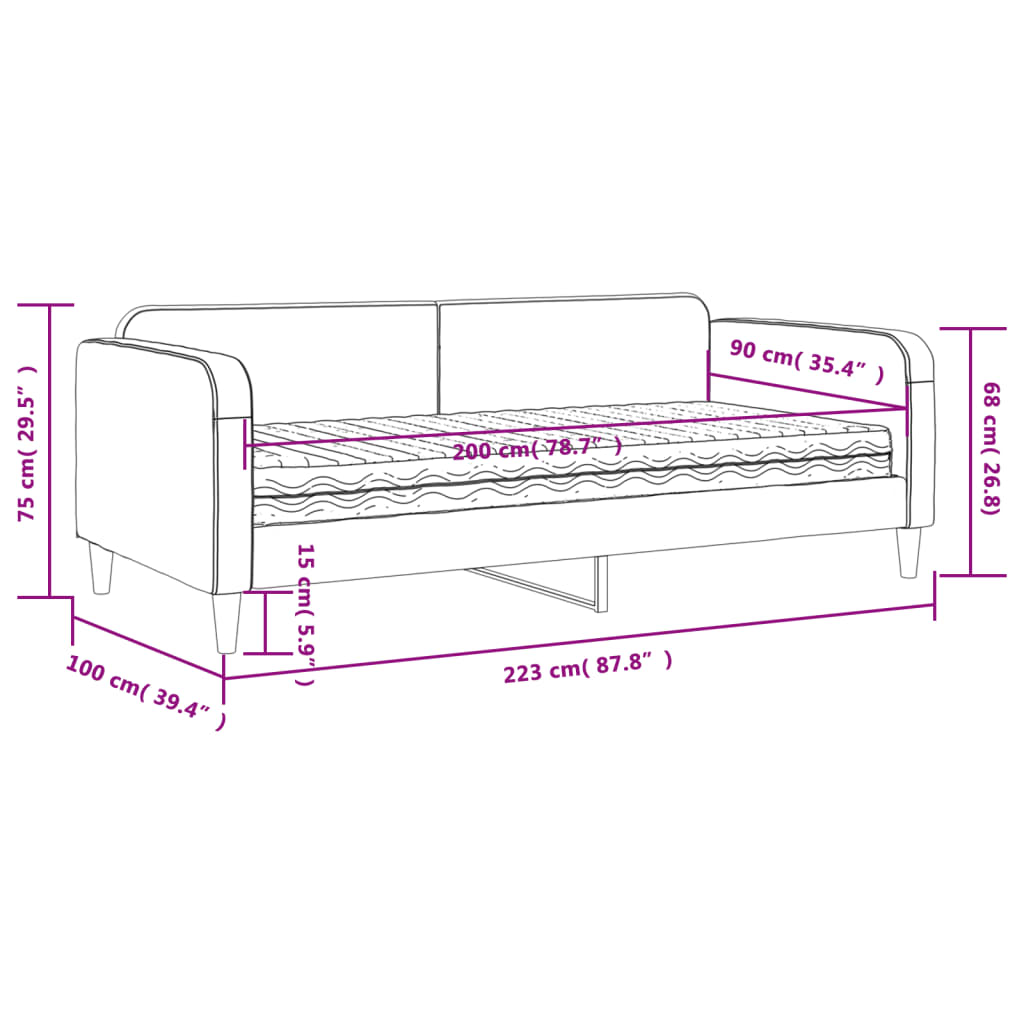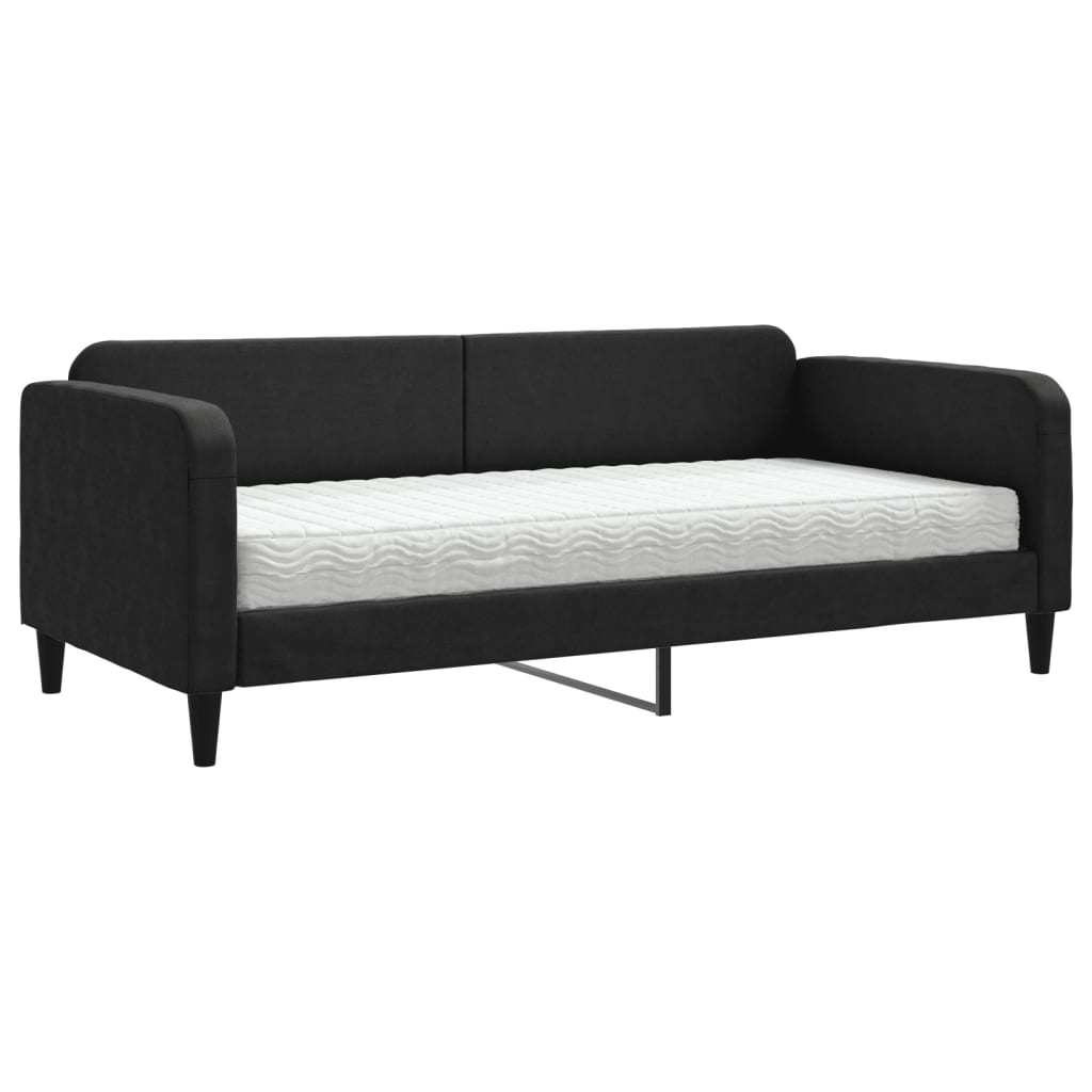 Dieses 2-in-1-Tagesbett mit Matratze, das sowohl als Sofa als auch als Bett dient, ist eine praktische und auffällige Ergänzung zu deinem Wohn- oder Schlafzimmer. Vielseitiges Tagesbett: Das Schlafsofa fungiert tagsüber als Sofa und lässt sich nachts leicht in ein Bett umwandeln - eine praktische Lösung, um Gästen einen bequemen Schlafplatz zu bieten und den Platz zu maximieren.Komfortable Schaumstoffmatratze: Dieses Bett wird samt einer Schaumstoffmatratze geliefert, die maximalen Halt und optimalen Komfort bietet.Strapazierfähiger Stoff und robuste Konstruktion: Dieses Tagesbettsofa besitzt einen stabilen Rahmen aus Holz und Metall und ist mit strapazierfähigem und bequemem Stoff bezogen.