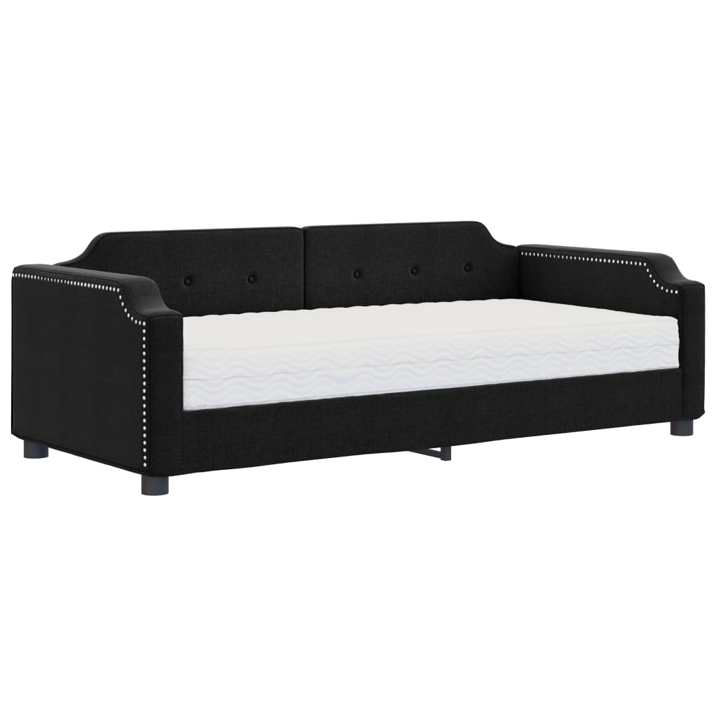 Dieses 2-in-1-Tagesbett mit Matratze, das sowohl als Sofa als auch als Bett dient, ist eine praktische und auffällige Ergänzung zu deinem Wohn- oder Schlafzimmer. Vielseitiges Tagesbett: Das Schlafsofa fungiert tagsüber als Sofa und lässt sich nachts leicht in ein Bett umwandeln - eine praktische Lösung, um Gästen einen bequemen Schlafplatz zu bieten und den Platz zu maximieren. Komfortable Schaumstoffmatratze: Dieses Bett wird samt einer Schaumstoffmatratze geliefert, die maximalen Halt und optimalen Komfort bietet. Strapazierfähiger Stoff und robuste Konstruktion: Dieses Tagesbettsofa besitzt einen stabilen Rahmen aus Holz und Metall und ist mit strapazierfähigem und bequemem Stoff bezogen.