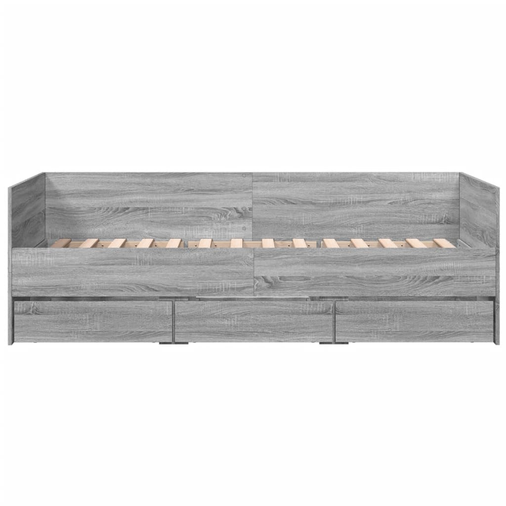 Dieses ausziehbare 2-in-1 Tagesbett mit Schubladen, das sowohl als Sofa als auch als Bett dient, wird ein praktisches und auffälliges Möbel in deinem Wohn- oder Schlafzimmer. Vielseitiges Tagesbett: Das Schlafsofa fungiert tagsüber als Sofa und lässt sich nachts durch Ausziehen des Rollkastens leicht in ein Doppelbett verwandeln - eine praktische Lösung, um Gästen einen bequemen Schlafplatz zu bieten und den Platz zu maximieren. Reichlich Stauraum: Dieses Gästebett verfügt über 3 Schubladen mit Rollen, die reichlich Stauraum für Kleidung, Socken, Spielzeug, Decken, Kissen usw. bieten.Solide Konstruktion: Dieses Daybed hat einen robusten Rahmen aus Holzwerkstoff. Holzwerkstoff ist ein Material von außergewöhnlicher Qualität mit glatter Oberfläche, das sich durch Festigkeit, Stabilität und Feuchtigkeitsbeständigkeit auszeichnet. Gut zu wissen:Die Lieferung beinhaltet nur einen Bettrahmen. Die Matratze ist nicht enthalten. In unserem Shop finden Sie auch passende Matratzen.