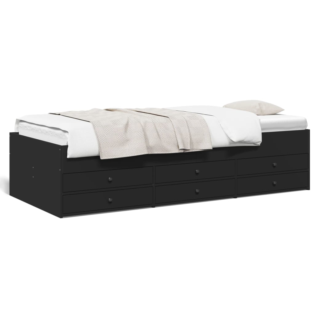 Dieses ausziehbare 2-in-1 Tagesbett mit Schubladen, das sowohl als Sofa als auch als Bett dient, wird ein praktisches und auffälliges Möbel in deinem Wohn- oder Schlafzimmer. Vielseitiges Tagesbett: Das Schlafsofa fungiert tagsüber als Sofa oder nachts als Bett und bietet eine bequeme Lösung für die Bewirtung von Gästen und die Maximierung des Platzes. Reichlich Stauraum: Dieses Gästebett verfügt über 6 Schubladen mit Rollen, die reichlich Stauraum für Kleidung, Socken, Spielzeug, Decken, Kissen usw. bieten.Solide Konstruktion: Dieses Daybed hat einen robusten Rahmen aus Holzwerkstoff. Holzwerkstoff ist ein Material von außergewöhnlicher Qualität mit glatter Oberfläche, das sich durch Festigkeit, Stabilität und Feuchtigkeitsbeständigkeit auszeichnet. Gut zu wissen:Die Lieferung beinhaltet nur einen Bettrahmen. Die Matratze ist nicht enthalten. In unserem Shop finden Sie auch passende Matratzen.