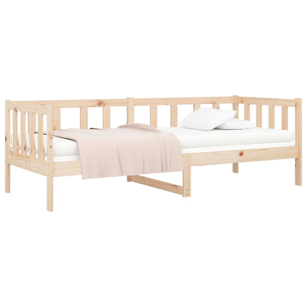 Dieses vielseitige Tagesbett kann sowohl als Bett im Schlafzimmer verwendet werden, als auch als Sofa im Wohnzimmer dienen. Es erfüllt die unterschiedlichsten Bedürfnisse und bietet viel Platz zum Schlafen oder Ausruhen. Massives Kiefernholz: Massives Kiefernholz ist ein wunderschönes Naturmaterial. Kiefernholz weist eine gerade Maserung auf und die Aststellen verleihen dem Material seine charakteristische, rustikale Optik. Aus massivem Kiefernholz gefertigt, ist dieses Gästebett stabil und langlebig. Bettgitter auf 3 Seiten: Mit seinen seitlichen Bettgittern vermittelt dieses Gästebett ein Gefühl der Sicherheit und verleiht deinem Zuhause auch einen Hauch von raffiniertem Stil. Latten-Design: Der Lattenrost sorgt für eine bessere Luftzirkulation, um die Matratze länger frisch zu halten, verbessert die Gewichtsverteilung und sorgt für Stabilität. Vielseitig einsetzbar: Dieses Tagesbett aus Holz kann tagsüber als Sofa und nachts als Bett verwendet werden, um Übernachtungsgästen einen gemütlichen Schlafplatz zu bieten. Zusätzlicher Stauraum: Nutze den Platz unter dem Bett, um verschiedene Sachen zu verstauen. Perfekt für die Aufbewahrung von Kisten, um deine Kleidung, Spielsachen oder Steppdecken zu organisieren. Hinweis: Die Lieferung beinhaltet nur einen Bettrahmen. Die Matratze ist nicht enthalten. In unserem Shop finden Sie auch passende Matratzen.Jedes Produkt wird mit einer Montageanleitung in der Verpackung für eine einfache Montage geliefert.