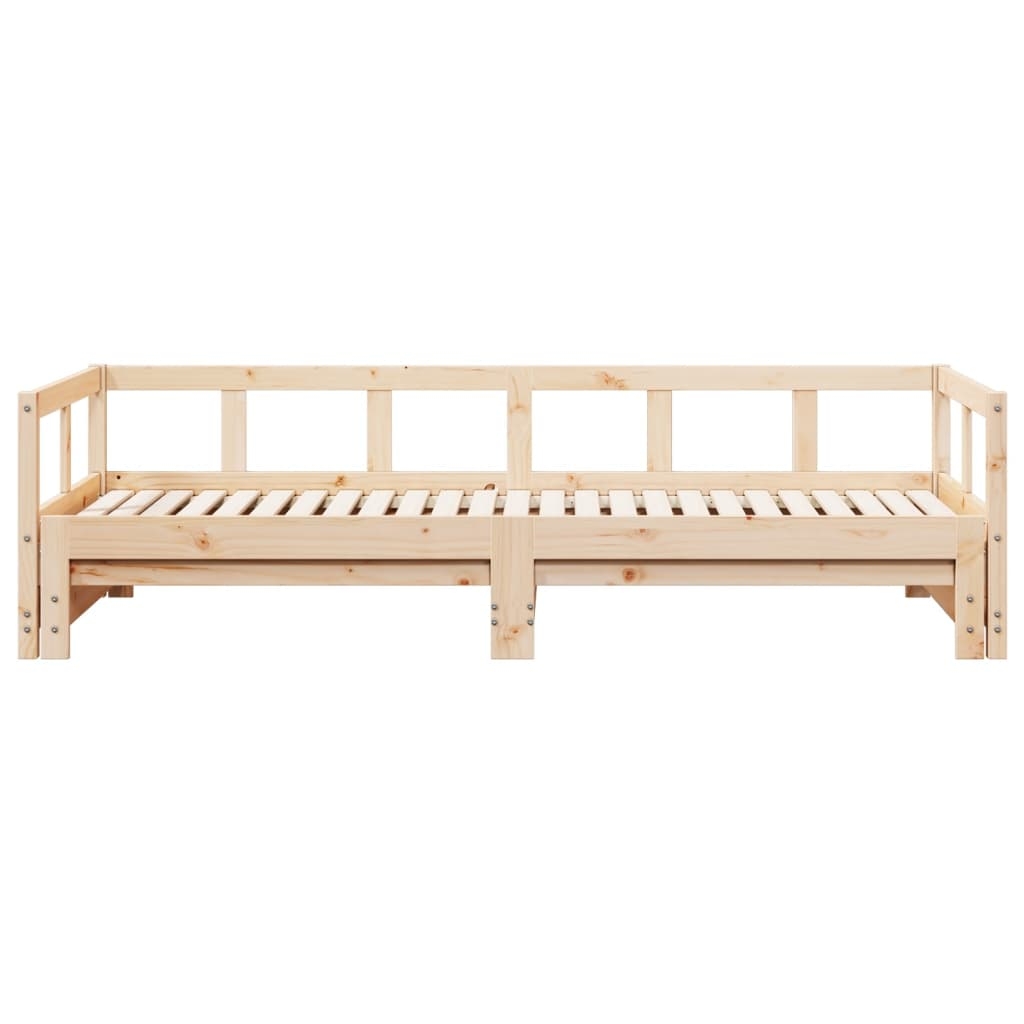 Dieses ausziehbare 2-in-1-Tagesbett, das sich sowohl als Sofa als auch als Bett verwenden lässt, ist eine praktische und auffällige Ergänzung zu deinem Wohn- oder Schlafzimmer.Stabiles und langlebiges Gestell: Massives Kiefernholz ist für seine Stärke und Haltbarkeit bekannt. Seine gerade Maserung und die charakteristischen Aststellen tragen zu seinem rustikalen Charme bei.Vielseitiges Tagesbett: Das Schlafsofa fungiert tagsüber als Sofa und lässt sich nachts durch Ausziehen des Rollkastens leicht in ein Doppelbett verwandeln - eine praktische Lösung, um Gästen einen bequemen Schlafplatz zu bieten und den Platz zu maximieren.Lattenrost für optimale Unterstützung: Der Bettrahmen ist mit einem Lattenrost ausgestattet, der deine Matratze stützt und atmungsaktiv hält.Stabile und haltbare Beine: Dieses Bett wird von starken Beinen getragen, die für Stabilität, Sicherheit und Festigkeit sorgen.Gut zu wissen:Die Lieferung beinhaltet nur einen Bettrahmen. Die Matratze ist nicht enthalten. In unserem Shop finden Sie auch passende Matratzen.