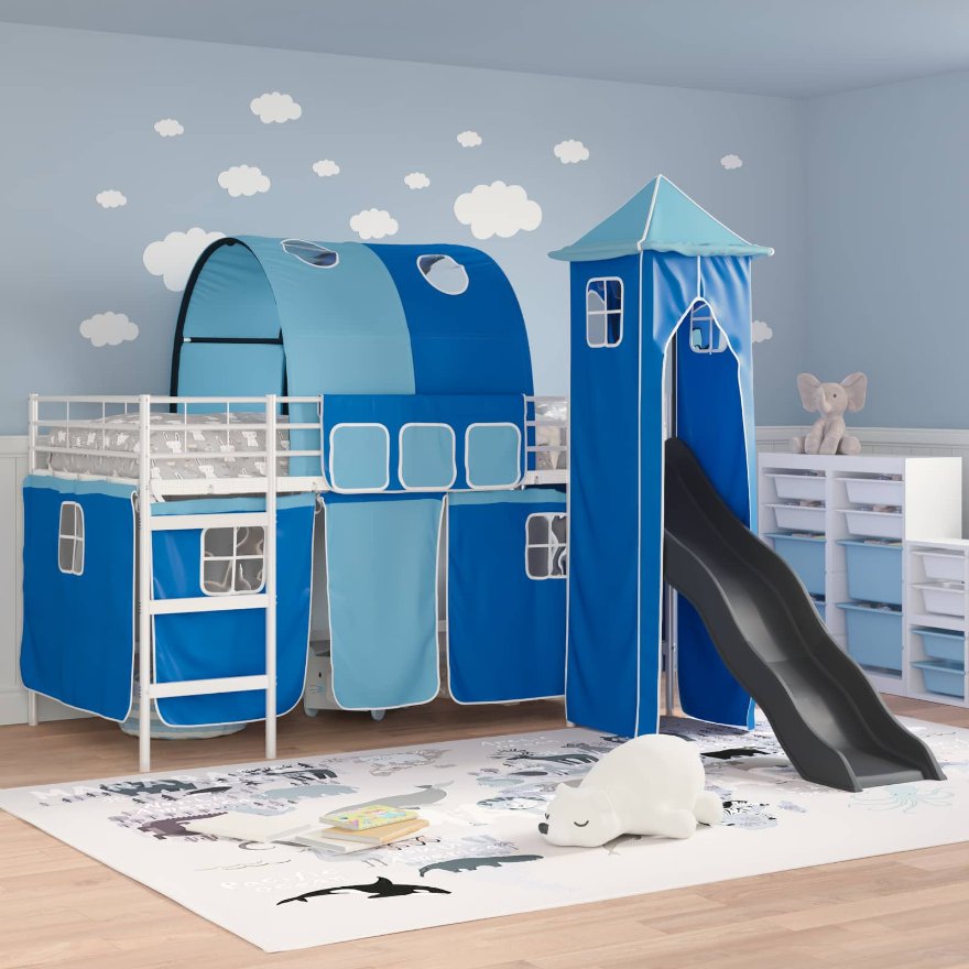 Dieser moderne Hochbett-Rahmen mit Vorhängen, Turm und Rutsche ist die perfekte Lösung für coole Kinderzimmer. Das frische Design sorgt dafür, dass es überall gut aussieht. Mit dem tollen Turm und der aufregenden Rutsche wird die Schlafenszeit zum Erlebnis. Das durchdachte Design macht es möglich, den Platz optimal zu nutzen und passt super zum aktiven Lebensstil von Kindern, denn es fördert Fantasie und Kreativität. So wird das Möbelstück zum echten Highlight im Kinderzimmer. Robuster Metallrahmen: Dieser Metallrahmen ist extrem stabil und hält den Abenteuern aktiver Kinder stand. Die matte Oberfläche sieht super aus und passt zu jedem Kinderzimmer-Stil. Sicherheit und Stabilität sind auch wichtig – das Bett ist darauf ausgelegt, den täglichen Gebrauch zu überstehen. Spannende Rutsche und Turm: Mit der integrierten Rutsche und dem Turm wird das Schlafzimmer zum Spielplatz. Die Elemente fördern kreatives Spielen und machen es zu mehr als nur einem Bett – hier wird Lernen mit Spaß kombiniert. Funktionale Vorhänge: Das Bett hat Vorhänge, die einfach zu handhaben sind und für einen ordentlichen Look sorgen. Die coolen blauen und schwarzen Farben der Vorhänge bringen ein bisschen Geheimnis und bieten gleichzeitig die Privatsphäre, wenn nötig. Der Bogen versteckt die Montage und sieht dazu noch gut aus. Matte Oberfläche: Die matte Lackierung hält Fingerabdrücke und Staub fern und sieht einfach schick aus. Das Design ist zeitlos und passt wunderbar in moderne Räume, während die Pflege minimal bleibt. Einfach zu reinigen: Für die Pflege reicht ein feuchtes Tuch, ohne aggressive Chemikalien. Befolge die Montageanweisung des Herstellers, um die Möglichkeiten des Bettes optimal zu nutzen und seine Lebensdauer zu verlängern. So ist es eine langlebige Wahl für Familien.
