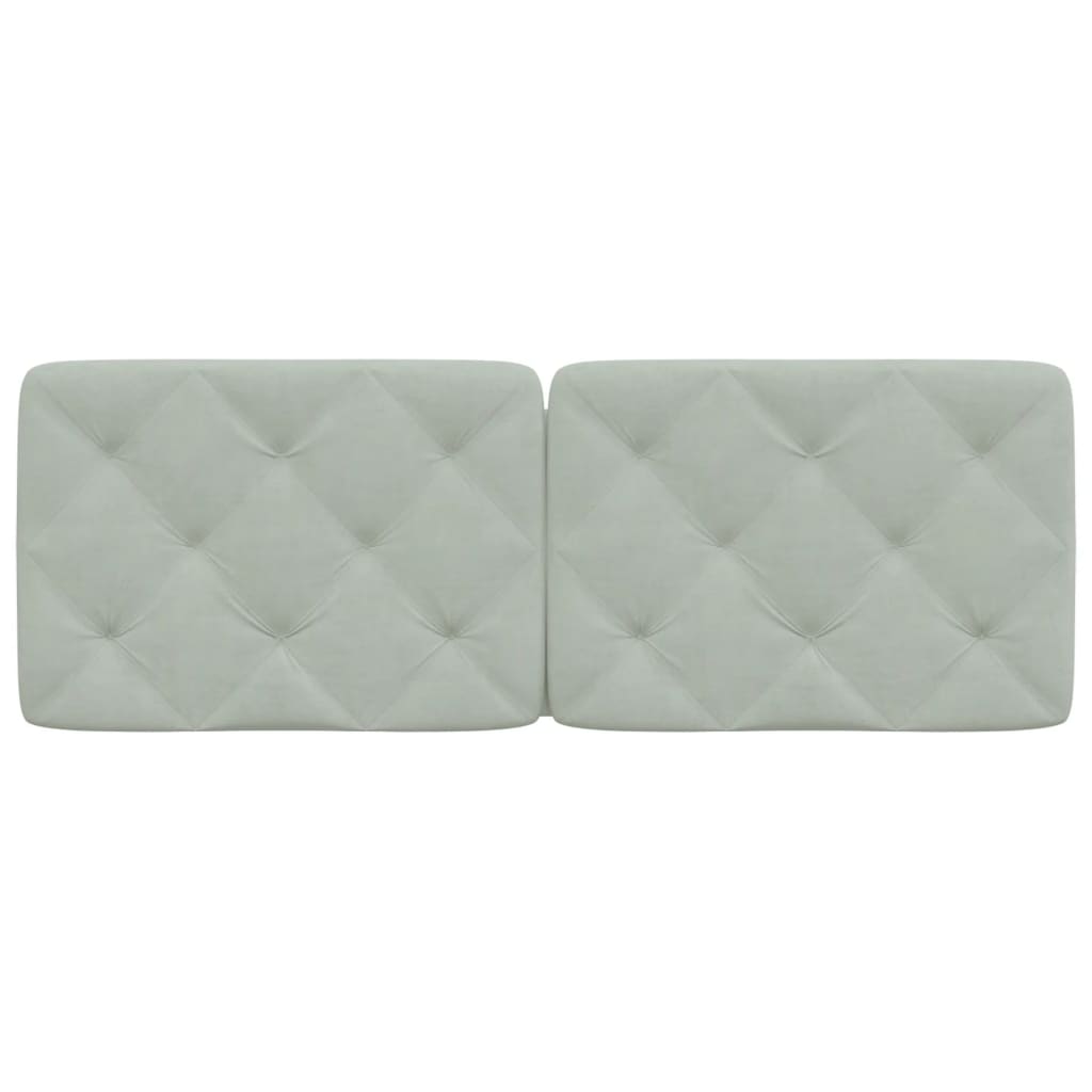 Dieses Kopfteil-Kissen mit stilvollem Design verleiht deinem Bett Komfort und Eleganz und fügt sich in jedes Schlafzimmer ein. Weicher Samt: Samt ist ein weicher und bequemer Stoff, der sich angenehm auf der Haut anfühlt. Ausgezeichnete Unterstützung: Das Kopfteil-Kissen ist mit Schaumstoff gefüllt und fühlt sich daher extra weich und komfortabel an. Es bietet eine ausgezeichnete Rückenunterstützung beim Sitzen im Bett oder Fernsehen. Praktisches Design: Das Kopfteil mit Kissen hat einen Reißverschluss für eine einfache Montage. Die Klettverschlüsse auf der Rückseite können zur Befestigung von LED-Leisten verwendet werden. Vielseitige Montage: Das Kopfteil-Polster kann mit den mitgelieferten Gurten an die Wand gehängt werden, sodass es zu jeder Bettart passt. Du kannst es auch mit einem Bett mit gebogenen Kopfteil (in unserem Shop erhältlich) verwenden. Nimm einfach den Stoffbezug vom alten Kopfteil ab und lege dieses Kissen darauf und dann hast du schon ein bequemes Kopfteil! Klassische Schönheit: Die Rauten-Heftung unterstreicht die klassische Schönheit des gepolsterten Kopfteils. Gut zu wissen:Die Lieferung beinhaltet nur ein Kopfpolster. Bettgestell und Matratze sind nicht im Lieferumfang enthalten.