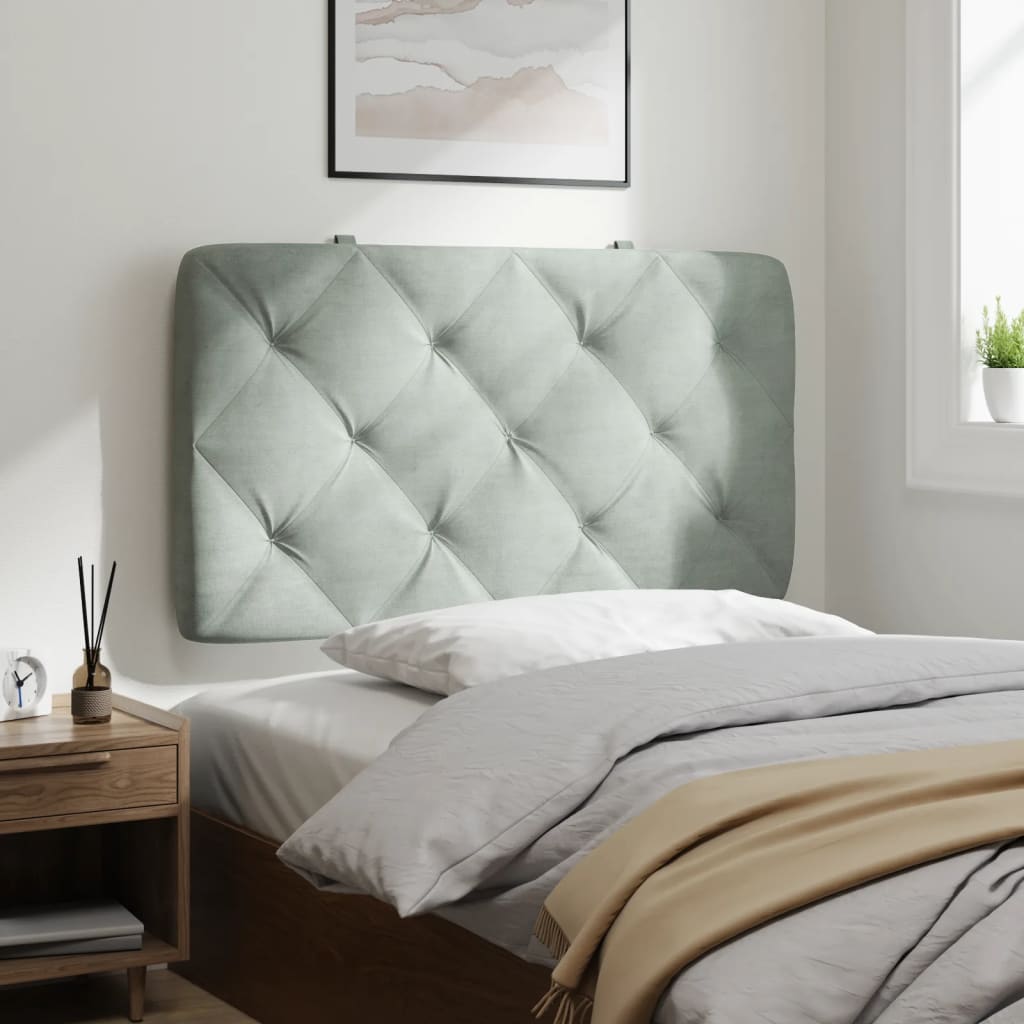 Dieses Kopfteil-Kissen mit stilvollem Design verleiht deinem Bett Komfort und Eleganz und fügt sich in jedes Schlafzimmer ein. Weicher Samt: Samt ist ein weicher und bequemer Stoff, der sich angenehm auf der Haut anfühlt. Ausgezeichnete Unterstützung: Das Kopfteil-Kissen ist mit Schaumstoff gefüllt und fühlt sich daher extra weich und komfortabel an. Es bietet eine ausgezeichnete Rückenunterstützung beim Sitzen im Bett oder Fernsehen. Praktisches Design: Das Kopfteil mit Kissen hat einen Reißverschluss für eine einfache Montage. Die Klettverschlüsse auf der Rückseite können zur Befestigung von LED-Leisten verwendet werden. Vielseitige Montage: Das Kopfteil-Polster kann mit den mitgelieferten Gurten an die Wand gehängt werden, sodass es zu jeder Bettart passt. Du kannst es auch mit einem Bett mit gebogenen Kopfteil (in unserem Shop erhältlich) verwenden. Nimm einfach den Stoffbezug vom alten Kopfteil ab und lege dieses Kissen darauf und dann hast du schon ein bequemes Kopfteil! Klassische Schönheit: Die Rauten-Heftung unterstreicht die klassische Schönheit des gepolsterten Kopfteils. Gut zu wissen:Die Lieferung beinhaltet nur ein Kopfpolster. Bettgestell und Matratze sind nicht im Lieferumfang enthalten.