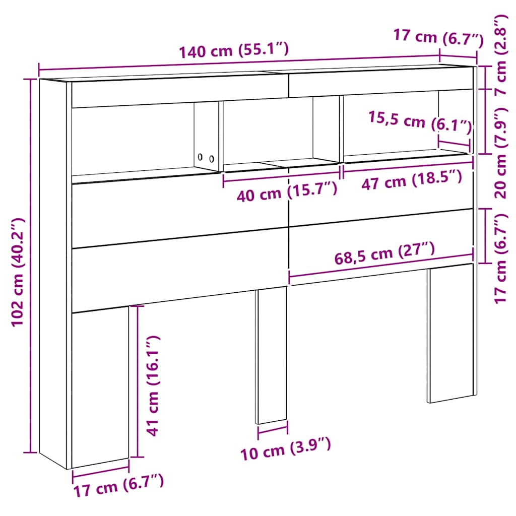 Mit seinem stilvollen Design verleiht dieses LED-Kopfteil mit Ablagen deinem Bettgestell eine moderne Note und passt perfekt in jedes Schlafzimmer. Langlebiges Material: Der Holzwerkstoff ist von außergewöhnlicher Qualität mit glatter Oberfläche und zeichnet sich außerdem durch Festigkeit, Stabilität und Widerstandsfähigkeit gegen Feuchtigkeit aus.RGB-LED-Leuchten: Das Kopfteil ist mit lebendigen RGB-LED-Leuchten ausgestattet. Mit verschiedenen anpassbaren Menüs kannst du die Farbe der Lichter mühelos wechseln und sie sogar auf automatische Anpassung einstellen. Die LED-Beleuchtung unterstreicht den modernen Look des Kopfteils und trägt zu seinem trendigen Design bei.Viel Stauraum: Mit offenen Fächern und einer robusten oberen Ablage versehen, eignet sich das Kopfteil perfekt, um Bücher, Dekoartikel, Bilderrahmen oder Wecker zur Schau zu stellen.Ausgezeichnete Unterstützung: Das Bettkopfteil bietet eine hervorragende Rückenlehne beim Lesen oder Fernsehen. Gut zu wissen:Die Lieferung umfasst nur das LED-Kopfteil. Der Bettrahmen und die Matratze sind nicht im Lieferumfang enthalten. In unserem Shop findest du auch passende Bettgestelle und Matratzen.Das Produkt verfügt über einen USB-Anschluss, für den eine zertifizierte 5V-USB-Stromquelle erforderlich ist (nicht im Lieferumfang enthalten). Achtung:Um ein Umkippen zu vermeiden, sollte dieses Produkt mit der mitgelieferten Wandhalterung gesichert werden.