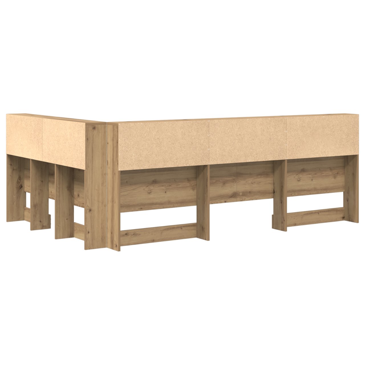 Dieses L-förmige Bücherregal-Kopfteil verbindet praktischen Nutzen mit minimalistischem Design für dein Schlafzimmer. Es ist ein pfiffiger Platzsparer, der perfekt in schlichte Innenräume passt. Mit seinen klaren Linien und dem ordentlichen Aussehen bietet dieses Kopfteil nicht nur viel Stauraum, sondern sorgt auch dafür, dass dein Schlafbereich neat und modern bleibt. Es ist ideal für alle, die sowohl auf Funktion als auch auf Stil setzen. Hergestellt aus Holzwerkstoff: Dieses Bücherregal-Kopfteil aus robustem Holzwerkstoff strahlt zuverlässigen und stylischen Charme aus. Es ist stabil und für die Ewigkeit gemacht, was deinem Schlafzimmer einen tollen Akzent verleiht und perfekt zu einem minimalistischen Stil passt. Robust und stabil: Es hält täglicher Abnutzung stand und bietet festen Halt für all deine Sachen. Das Kopfteil bleibt dort, wo es sein soll, sodass du sicher sein kannst, dass deine persönlichen Gegenstände gut verstaut sind. Regal-Bretter: Mit praktischen integrierten Regalen bietet dieses Kopfteil einen Haufen Stauraum und macht wichtige Sachen leicht erreichbar. Es ist eine einfache Möglichkeit, Bücher, Deko oder Gadgets in deinem Schlafbereich ordentlich zu halten. Platzsparendes Layout: Die L-Form nutzt Ecken optimal aus und verwandelt ungenutzten Raum in nützliche Stauraum- oder Ausstellungsflächen. Es ist eine smarte Wahl für kleinere Schlafzimmer, die Platz bieten, ohne den Raum zu überladen. Einfache Pflege: Dieses Kopfteil sauber zu halten, ist mega leicht – einfach mit einem feuchten Tuch abwischen. So bleibt es frisch und unterstützt einen ordentlichen Wohnraum.