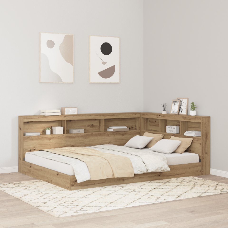 Dieses L-förmige Bücherregal-Kopfteil verbindet praktischen Nutzen mit minimalistischem Design für dein Schlafzimmer. Es ist ein pfiffiger Platzsparer, der perfekt in schlichte Innenräume passt. Mit seinen klaren Linien und dem ordentlichen Aussehen bietet dieses Kopfteil nicht nur viel Stauraum, sondern sorgt auch dafür, dass dein Schlafbereich neat und modern bleibt. Es ist ideal für alle, die sowohl auf Funktion als auch auf Stil setzen. Hergestellt aus Holzwerkstoff: Dieses Bücherregal-Kopfteil aus robustem Holzwerkstoff strahlt zuverlässigen und stylischen Charme aus. Es ist stabil und für die Ewigkeit gemacht, was deinem Schlafzimmer einen tollen Akzent verleiht und perfekt zu einem minimalistischen Stil passt. Robust und stabil: Es hält täglicher Abnutzung stand und bietet festen Halt für all deine Sachen. Das Kopfteil bleibt dort, wo es sein soll, sodass du sicher sein kannst, dass deine persönlichen Gegenstände gut verstaut sind. Regal-Bretter: Mit praktischen integrierten Regalen bietet dieses Kopfteil einen Haufen Stauraum und macht wichtige Sachen leicht erreichbar. Es ist eine einfache Möglichkeit, Bücher, Deko oder Gadgets in deinem Schlafbereich ordentlich zu halten. Platzsparendes Layout: Die L-Form nutzt Ecken optimal aus und verwandelt ungenutzten Raum in nützliche Stauraum- oder Ausstellungsflächen. Es ist eine smarte Wahl für kleinere Schlafzimmer, die Platz bieten, ohne den Raum zu überladen. Einfache Pflege: Dieses Kopfteil sauber zu halten, ist mega leicht – einfach mit einem feuchten Tuch abwischen. So bleibt es frisch und unterstützt einen ordentlichen Wohnraum.