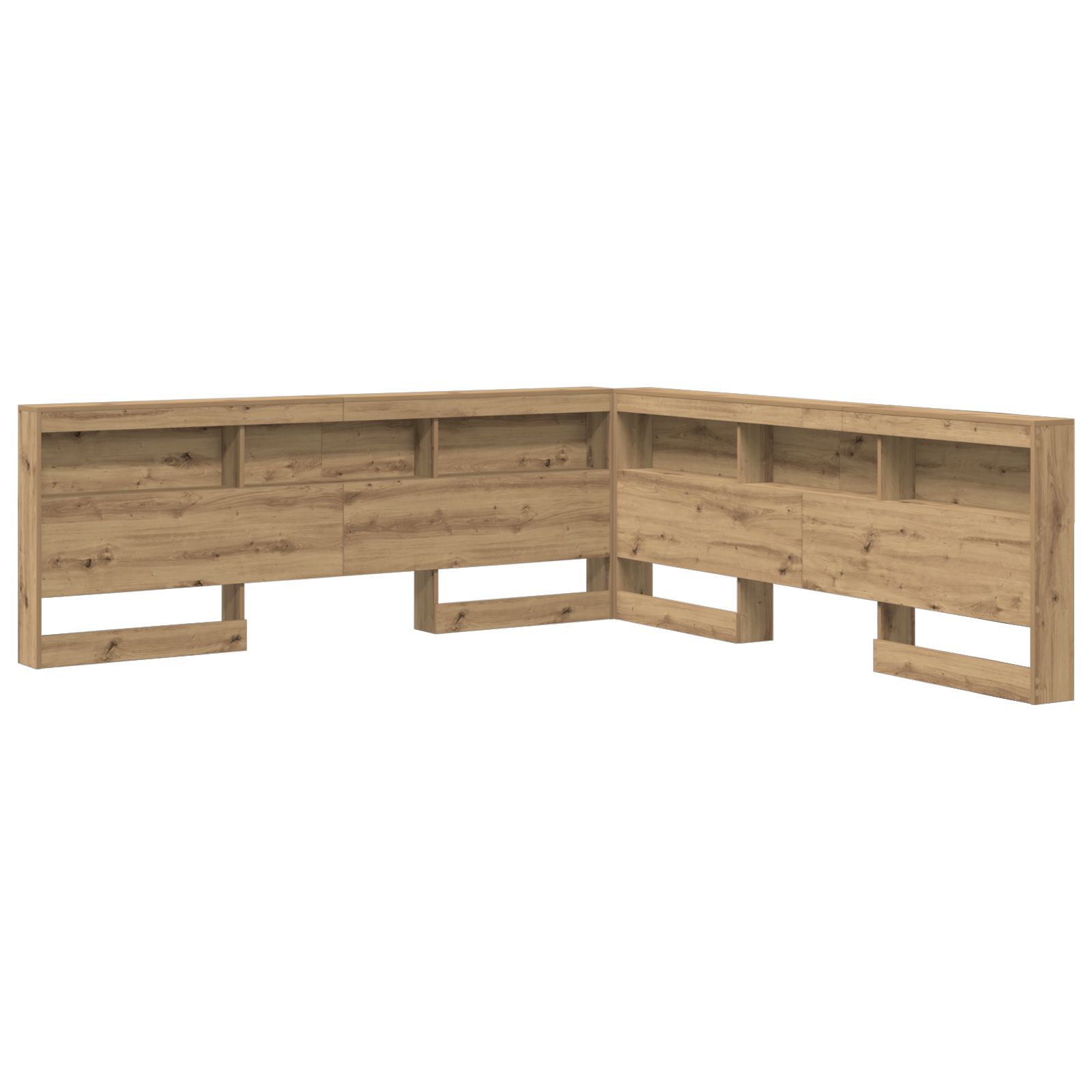 Dieses L-förmige Bücherregal-Kopfteil verbindet praktischen Nutzen mit minimalistischem Design für dein Schlafzimmer. Es ist ein pfiffiger Platzsparer, der perfekt in schlichte Innenräume passt. Mit seinen klaren Linien und dem ordentlichen Aussehen bietet dieses Kopfteil nicht nur viel Stauraum, sondern sorgt auch dafür, dass dein Schlafbereich neat und modern bleibt. Es ist ideal für alle, die sowohl auf Funktion als auch auf Stil setzen. Hergestellt aus Holzwerkstoff: Dieses Bücherregal-Kopfteil aus robustem Holzwerkstoff strahlt zuverlässigen und stylischen Charme aus. Es ist stabil und für die Ewigkeit gemacht, was deinem Schlafzimmer einen tollen Akzent verleiht und perfekt zu einem minimalistischen Stil passt. Robust und stabil: Es hält täglicher Abnutzung stand und bietet festen Halt für all deine Sachen. Das Kopfteil bleibt dort, wo es sein soll, sodass du sicher sein kannst, dass deine persönlichen Gegenstände gut verstaut sind. Regal-Bretter: Mit praktischen integrierten Regalen bietet dieses Kopfteil einen Haufen Stauraum und macht wichtige Sachen leicht erreichbar. Es ist eine einfache Möglichkeit, Bücher, Deko oder Gadgets in deinem Schlafbereich ordentlich zu halten. Platzsparendes Layout: Die L-Form nutzt Ecken optimal aus und verwandelt ungenutzten Raum in nützliche Stauraum- oder Ausstellungsflächen. Es ist eine smarte Wahl für kleinere Schlafzimmer, die Platz bieten, ohne den Raum zu überladen. Einfache Pflege: Dieses Kopfteil sauber zu halten, ist mega leicht – einfach mit einem feuchten Tuch abwischen. So bleibt es frisch und unterstützt einen ordentlichen Wohnraum.