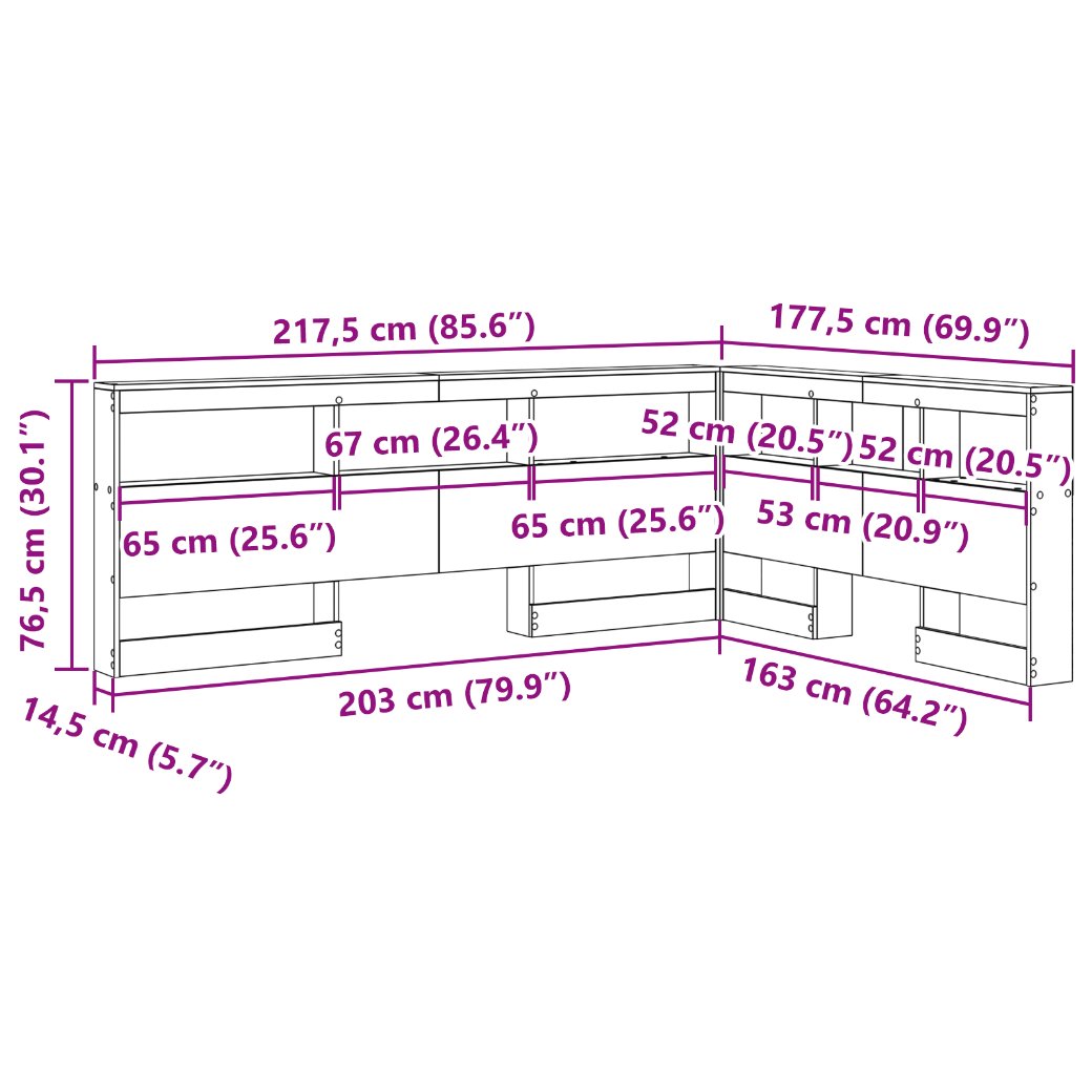 Dieses L-förmige Bücherregal-Kopfteil verbindet praktischen Nutzen mit minimalistischem Design für dein Schlafzimmer. Es ist ein pfiffiger Platzsparer, der perfekt in schlichte Innenräume passt. Mit seinen klaren Linien und dem ordentlichen Aussehen bietet dieses Kopfteil nicht nur viel Stauraum, sondern sorgt auch dafür, dass dein Schlafbereich neat und modern bleibt. Es ist ideal für alle, die sowohl auf Funktion als auch auf Stil setzen. Hergestellt aus Holzwerkstoff: Dieses Bücherregal-Kopfteil aus robustem Holzwerkstoff strahlt zuverlässigen und stylischen Charme aus. Es ist stabil und für die Ewigkeit gemacht, was deinem Schlafzimmer einen tollen Akzent verleiht und perfekt zu einem minimalistischen Stil passt. Robust und stabil: Es hält täglicher Abnutzung stand und bietet festen Halt für all deine Sachen. Das Kopfteil bleibt dort, wo es sein soll, sodass du sicher sein kannst, dass deine persönlichen Gegenstände gut verstaut sind. Regal-Bretter: Mit praktischen integrierten Regalen bietet dieses Kopfteil einen Haufen Stauraum und macht wichtige Sachen leicht erreichbar. Es ist eine einfache Möglichkeit, Bücher, Deko oder Gadgets in deinem Schlafbereich ordentlich zu halten. Platzsparendes Layout: Die L-Form nutzt Ecken optimal aus und verwandelt ungenutzten Raum in nützliche Stauraum- oder Ausstellungsflächen. Es ist eine smarte Wahl für kleinere Schlafzimmer, die Platz bieten, ohne den Raum zu überladen. Einfache Pflege: Dieses Kopfteil sauber zu halten, ist mega leicht – einfach mit einem feuchten Tuch abwischen. So bleibt es frisch und unterstützt einen ordentlichen Wohnraum.