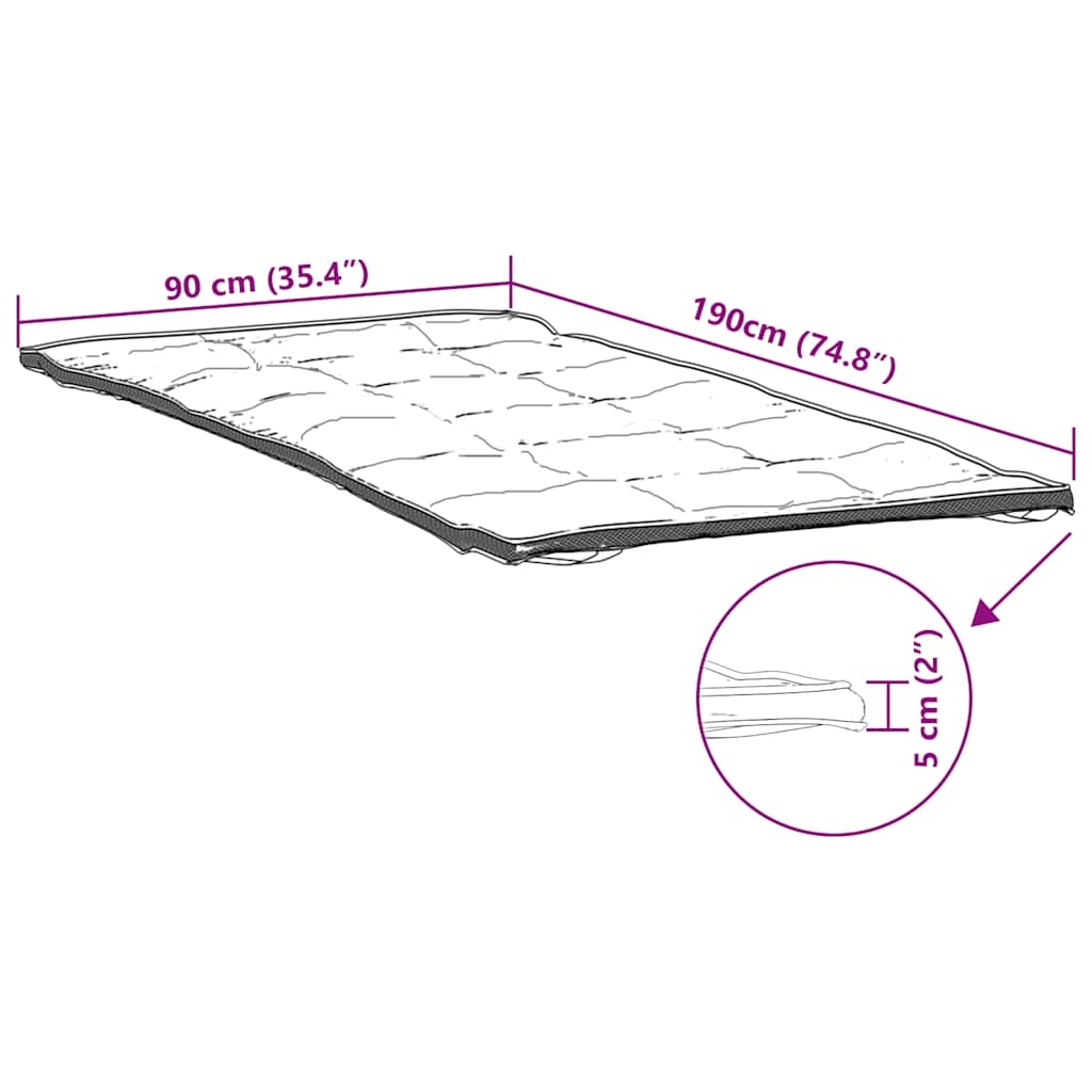 - Abmessungen: 90 x 190 x 5 cm (B x L x D)