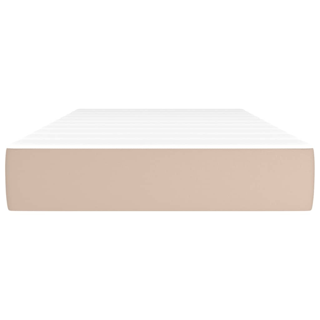 Genieße eine erholsame Nachtruhe mit dieser Taschenfederkernmatratze! Sie bietet dir maximale Entspannung und einen angenehmen Schlaf. Langlebiges Kunstleder: Hochwertiges Kunstleder ist ein äußerst langlebiges Material. Es ist schmutzabweisend und lässt sich mit einem feuchten Tuch einfach reinigen. Durch die glatte Oberfläche weist es die Schönheit von Echtleder und einen luxuriösen Look auf.Taschenfedern: Die eingebauten Taschenfedern sind für ihre hohe Qualität geschätzt und gewährleisten ein hohes Maß an Haltbarkeit und Anpassungsfähigkeit. Sie dämpfen Geräusche und Stöße, die beim Werfen und Umdrehen entstehen.Komfortabler Schaumstoff: Der Schaumstoff ist stoßdämpfend, kann Druck erkennen und den Körper gut stützen. Gleichzeitig kann sie die Müdigkeit lindern, ist ideal für die Blutzirkulation und bietet dir völlige Entspannung und eine bessere Schlafqualität.Mittelharte Unterstützung: Die Bettmatratze bietet zusätzliche Stabilität und genau den richtigen Härtegrad, ohne den Komfort zu beeinträchtigen. Sie ist also ideal für Rücken- oder Bauchschläfer. Gut zu wissen:Aus hygienischen Gründen kann die Matratze nicht zurückgegeben werden, wenn die Verpackung entfernt oder geöffnet wurde.