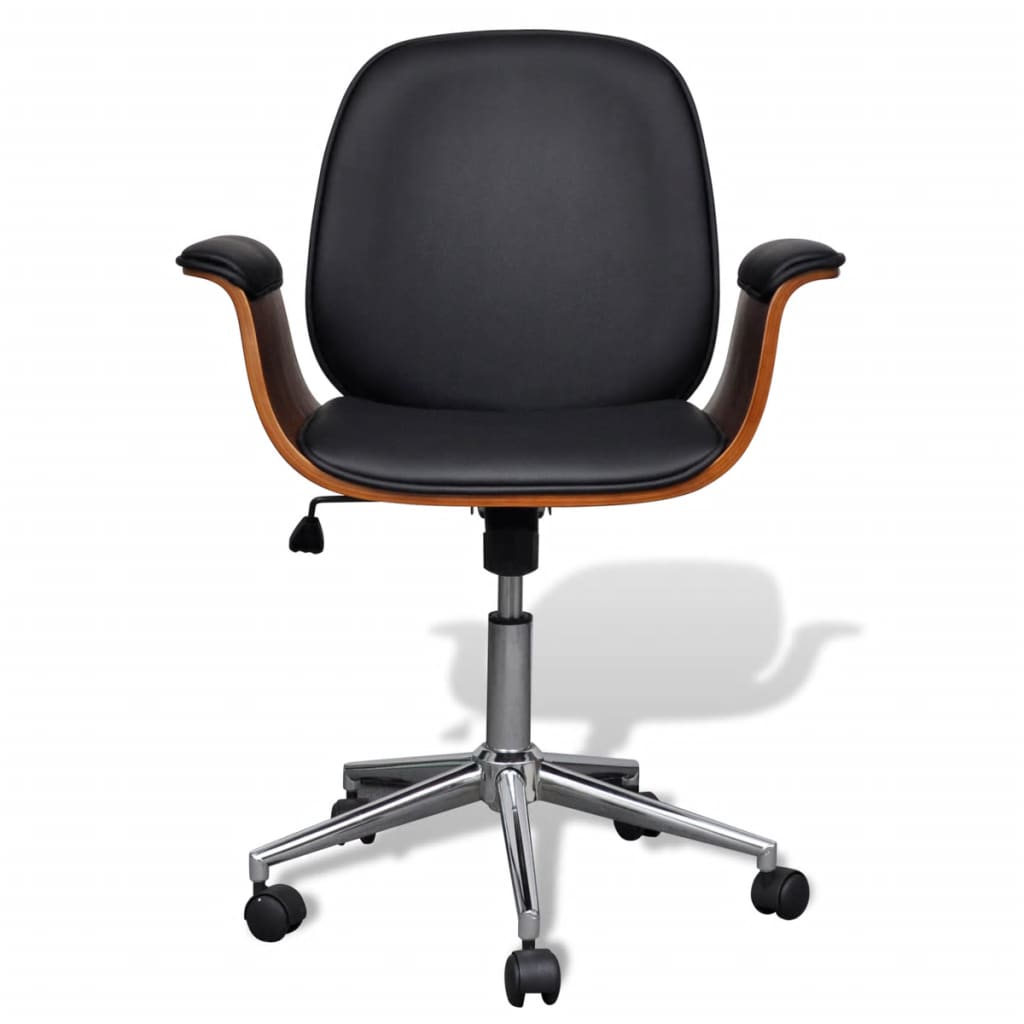 Dieser Armlehnstuhl eignet sich mit seinem gepflegten und zugleich zeitlosen Design perfekt für jeden Raum bei Ihnen zuhause oder am Arbeitsplatz.Der Armlehnstuhl ist mit pflegeleichtem Kunstleder bezogen und dick gepolstert, um optimalen Komfort zu bieten. Der gebogene Holzrahmen verleiht ihm einzigartige Schönheit und Eleganz. Die winkelverstellbare Rückenlehne stützt Ihren Rücken optimal und reduziert den Druck auf die Wirbelsäule. Die 5 Rollen ermöglichen eine tolle Bewegungsfreiheit.Dank des Gasdruckfeders kann dieser Sessel zudem in der Höhe verstellt werden und ist eine perfekte Ergänzung zu jedem Zuhause oder Büro.