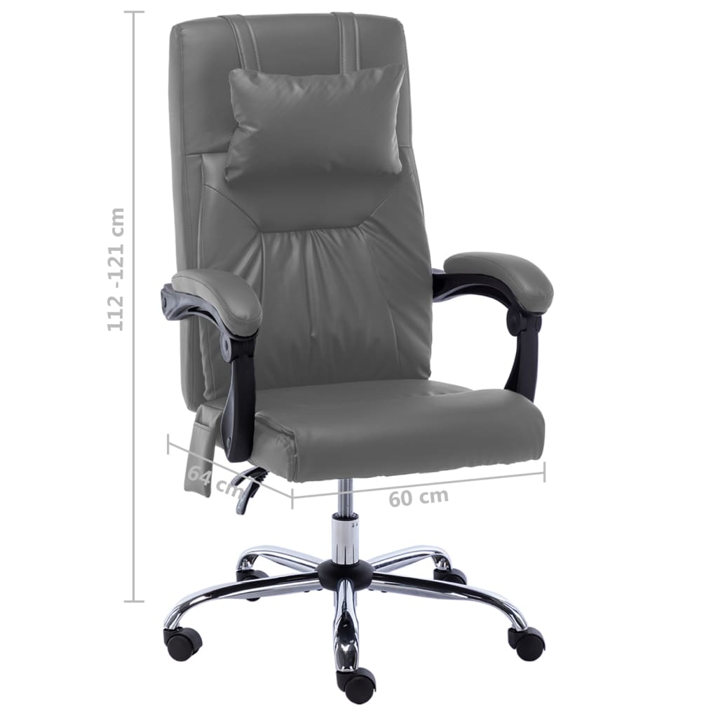 Mit seiner Massage- und Liegefunktion ist dieser Bürostuhl eine hervorragende Ergänzung für Ihr Büro. Er ist ergonomisch geformt und bietet höchsten Komfort während Ihres anstrengenden Arbeitstages. Er verfügt über eine hohe Rückenlehne, ein Nackenkissen mit Punktmassage, eine gebogene Armlehne und einen dick gepolsterten Sitz, der auch bei langen Arbeitssitzungen Komfort bietet. Das höhenverstellbare Design ermöglicht die Anpassung an die Schreibtischhöhe und sorgt für mehr Komfort und eine gesunde Ausrichtung der Wirbelsäule. Dieser Ruhesessel ist mit Nylonrollen ausgestattet, so dass Sie ihn leicht verschieben können. Er lässt sich von 95° bis 135° verstellen, um Ihnen die gewünschte Position zum Entspannen zu bieten.