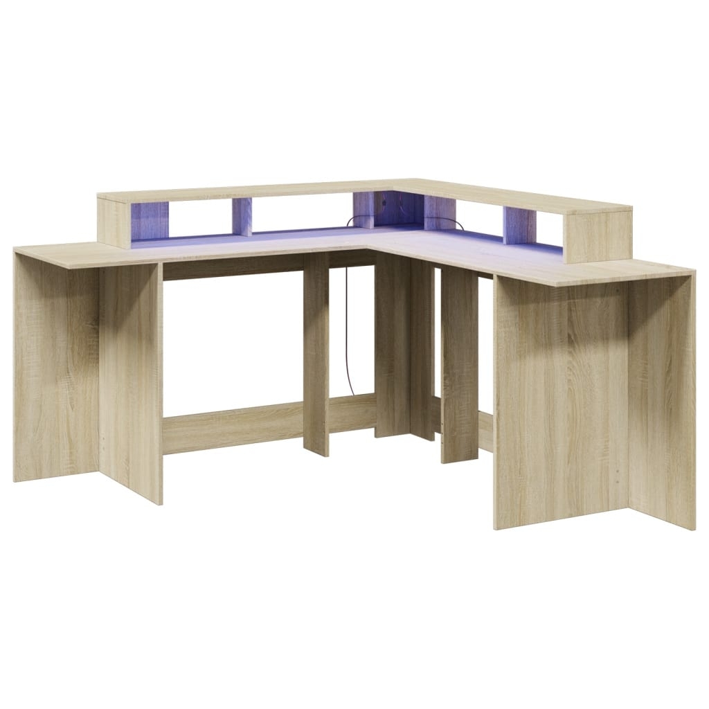 Dieser Schreibtisch schafft reichlich Stauraum, ist robust aufgebaut und mit LED-Beleuchtung versehen, was ihn zur perfekten Wahl macht, um einen übersichtlichen und stilvollen Arbeits- oder Gaming-Bereich zu schaffen. Starkes und langlebiges Material: Holzwerkstoff ist ein langlebiges und robustes Material mit einer glatten Oberfläche, das gegen Feuchtigkeit, Verformung und Rissbildung beständig ist; dadurch ist es eine zuverlässige Wahl für die Herstellung von Möbeln.RGB-LED-Beleuchtung für ein angenehmes Ambiente: Dieser Schreibtisch verfügt über LED-Leuchten, die sich einfach einstellen lassen, um eine personalisierte Lichtshow zu erzeugen. So kannst du die Modi, Farben und Helligkeit anpassen, um das gewünschte Ambiente in deinem Interieur zu schaffen.Reichlich Stauraum: Der Schreibtisch verfügt über offene Fächer und Ablagen und bietet dadurch reichlich Stauraum, um Bürobedarf ordentlich aufzubewahren und für mehr Ordnung auf deinem Schreibtisch zu sorgen.Kompakt und platzsparend: Durch sein Design in L-Form nimmt er kaum Platz in Anspruch und findet den idealen Platz in einer Ecke.Pflegeleicht: Dank seiner glatten Oberfläche lässt sich der LED-Schreibtisch leicht mit einem trockenen und weichen Tuch reinigen und erfordert wenig Pflege. Bitte trenne das Produkt bei Reinigung oder Nichtgebrauch von der Stromversorgung oder unterbreche die Stromversorgung. Achtung:Um ein Umkippen zu vermeiden, sollte dieses Produkt mit der mitgelieferten Wandhalterung gesichert werden. Gut zu wissen:Schrauben und Dübel sind für die Befestigung an der Wand nicht im Lieferumfang enthalten. Wir empfehlen dir, speziell für deine Wände geeignete Schrauben und Dübel zu finden und zu verwenden. Im Zweifelsfall wende dich an einen Fachmann. Bitte lese und befolge jeden Schritt der Anweisungen.Das Produkt verfügt über einen USB-Anschluss, für den eine zertifizierte 5V-USB-Stromquelle erforderlich ist (nicht im Lieferumfang enthalten).