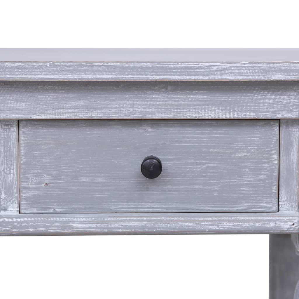 Mit diesem eleganten und funktionalen Schreibtisch bringen Sie eine Ikone des modernen Glamours der Mitte des Jahrhunderts in Ihr Interieur! Aus massivem Mahagoniholz mit grauem Finish gefertigt, ist der Schreibtisch äußerst langlebig und robust. Mahagoni ist ein tropisches Hartholz, das sich durch Schönheit, Haltbarkeit und eine einzigartige Farbe auszeichnet. Dieser Computertisch verfügt über 2 Schubladen, die Platz für Bücher und andere Schreibwaren bieten.