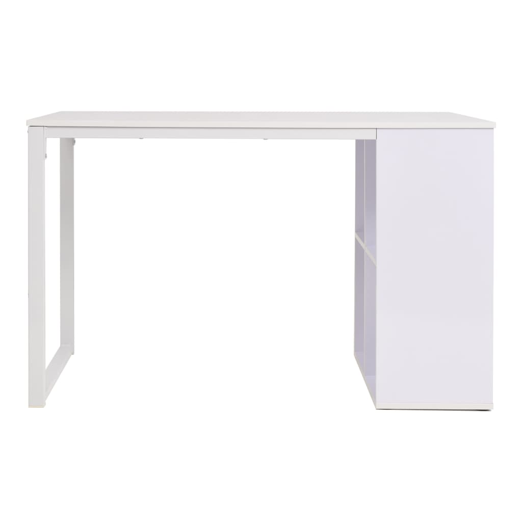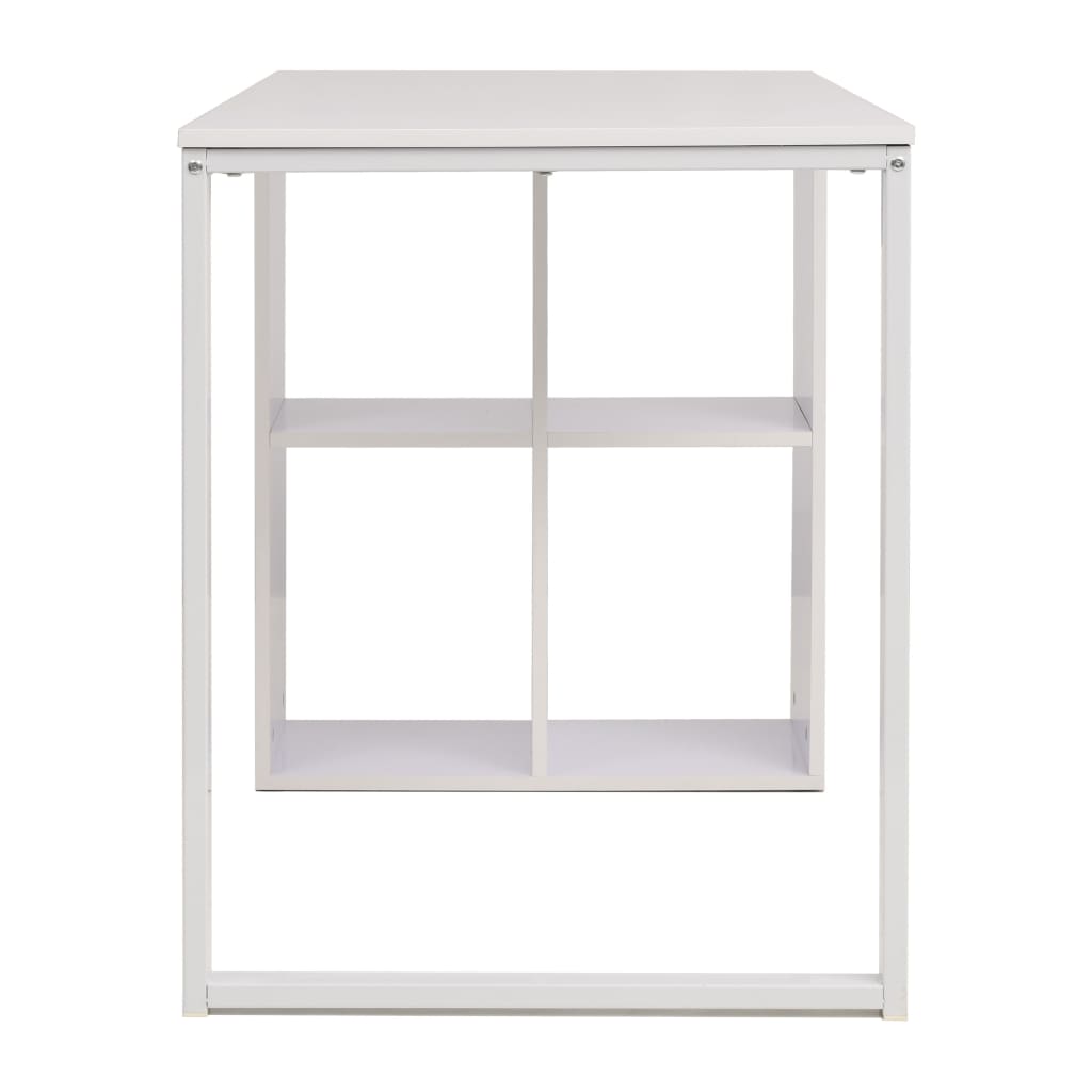 Dieser Schreibtisch im zeitgemäßen Design wird eine tolle Ergänzung für Ihr Büro oder Arbeitszimmer sein. Dieser Schreibtisch ist besonders stabil, langlebig und pflegeleicht, da die Schreibtischplatte aus starkem Holzwerkstoff und die Schreibtischbeine aus Stahl gefertigt sind. Die 4 großen Fächer an der Tischseite bieten viel Stauraum zur ordentlichen und platzsparenden Aufbewahrung von Büchern, Akten oder anderen nützlichen Gegenständen, die Sie immer in Reichweite haben können. Der Schreibtisch lässt sich aufgrund seiner Melaminbeschichtung leicht mit einem feuchten Tuch reinigen. Der Schreibtisch lässt sich einfach aufbauen