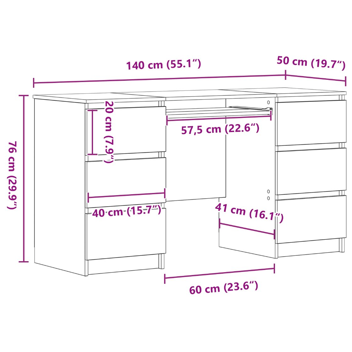 Dieser Schreibtisch aus schwarzer Eiche verbindet Funktionalität mit modernem Style und ist ein Muss für jedes Home Office, Schlafzimmer oder Arbeitszimmer. Mit seiner glatten Oberfläche und dem schicken Design eignet er sich perfekt zum Schreiben, Computerarbeiten oder Lernen. So entsteht ein gemütlicher und inspirierender Raum für deine Ideen und Produktivität. Der Schreibtisch hat ein elegantes Finish in schwarzer Eiche und verleiht jedem Raum einen modernen Touch. Mit sechs großen Schubladen bietet er reichlich Stauraum, um alles ordentlich zu halten, was das Aufräumen zum Kinderspiel macht. Hergestellt aus hochwertigem massivem Eichenholz ist der Schreibtisch robust und gleichzeitig schick – perfekt für modernes Design. Für die Innennutzung konzipiert, passt er super in verschiedene Umgebungen wie Home Offices, Schlafzimmer und Arbeitszimmer und verbessert sowohl die Funktionalität als auch das Aussehen. Mit Dimensionen von 140 cm in der Länge, 50 cm in der Breite und 76 cm in der Höhe bietet dieser Schreibtisch ausreichend Platz für einen Laptop oder Bücher – ideal für alle, die einen effizienten Arbeitsplatz wollen.