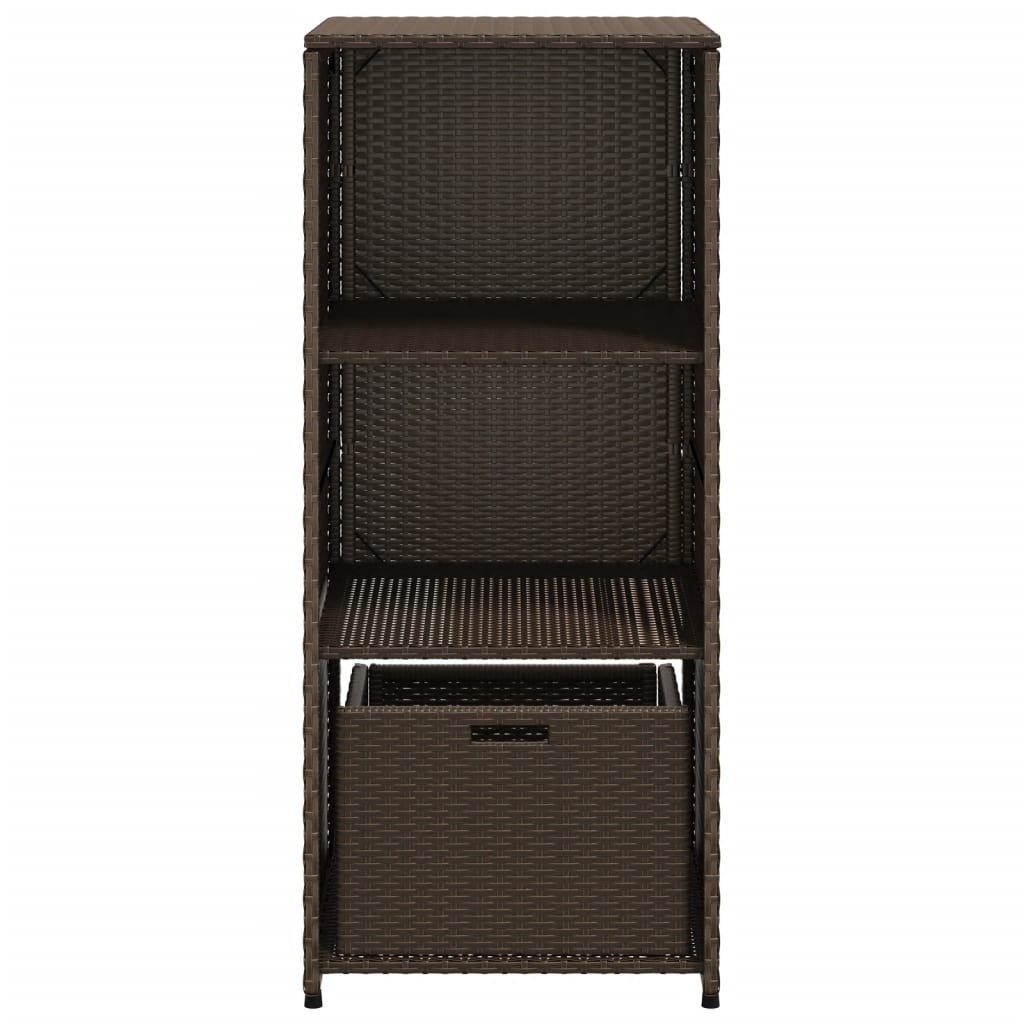 Dieser Outdoor-Schrank eignet sich perfekt, um deine Decken, Kissen, Gartenbedarf, Pooltücher und andere Gegenstände ordentlich und leicht zugänglich aufzubewahren. Langlebiges Material: PE-Rattan, auch als Poly Rattan bekannt, ist ein robustes, pflegeleichtes synthetisches Material, das die Optik von natürlichem Rattan aufweist. Es kennzeichnet sich durch ein geringes Eigengewicht und lässt sich einfach reinigen. Aufgrund seiner Haltbarkeit und Witterungsbeständigkeit wird es häufig bei der Herstellung von Gartenmöbeln verwendet.Viel Stauraum: Dieser Outdoor-Aufbewahrungsschrank verfügt über 2 Böden und 1 Schublade zur Aufbewahrung der Gartengeräte, Poolspielzeuge, Outdoor-Kissen und mehr.Robuster und stabiler Rahmen: Dank des pulverbeschichteten Stahlrahmens ist das Outdoor-Möbel robust, stabil und für den täglichen Einsatz im Außenbereich geeignet. AchtungUm ein Umkippen zu vermeiden, sollte dieses Produkt mit der mitgelieferten Wandhalterung gesichert werden. Gut zu wissen:Wir empfehlen dir, deine Gartenmöbel mit einer wasserdichten Hülle zu schützen, um lange Zeit eine ansprechende Optik aufzuweisen.