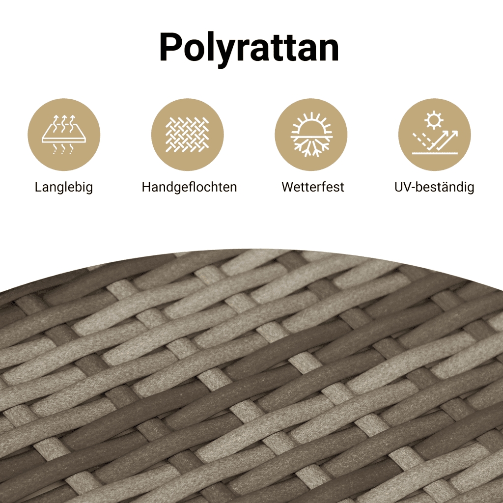 - Material: PE-Rattan, pulverbeschichteter Stahl