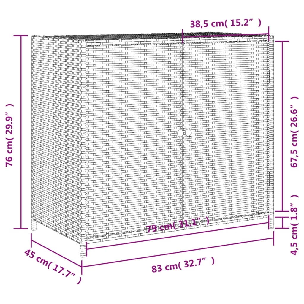 Dieser Outdoor-Schrank eignet sich perfekt, um deine Decken, Kissen, Gartenbedarf, Pooltücher und andere Gegenstände ordentlich und leicht zugänglich aufzubewahren. Langlebiges Material: PE-Rattan, auch als Poly Rattan bekannt, ist ein robustes, pflegeleichtes synthetisches Material, das die Optik von natürlichem Rattan aufweist. Es kennzeichnet sich durch ein geringes Eigengewicht und lässt sich einfach reinigen. Aufgrund seiner Haltbarkeit und Witterungsbeständigkeit wird es häufig bei der Herstellung von Gartenmöbeln verwendet.Viel Stauraum: Dieser Outdoor-Aufbewahrungsschrank bietet hinter den beiden Türen viel Platz für die Aufbewahrung der Gartenwerkzeuge, Poolspielzeuge, Outdoor-Kissen und mehr.Robuster und stabiler Rahmen: Dank des pulverbeschichteten Stahlrahmens ist das Outdoor-Möbel robust, stabil und für den täglichen Einsatz im Außenbereich geeignet. Praktische Türen: Beide 2 Türen sind mit Edelstahl-Türknöpfen und Magneten zum einfachen Öffnen und Schließen ausgestattet. AchtungUm ein Umkippen zu vermeiden, sollte dieses Produkt mit der mitgelieferten Wandhalterung gesichert werden. Gut zu wissen:Wir empfehlen dir, deine Gartenmöbel mit einer wasserdichten Hülle zu schützen, um lange Zeit eine ansprechende Optik aufzuweisen.