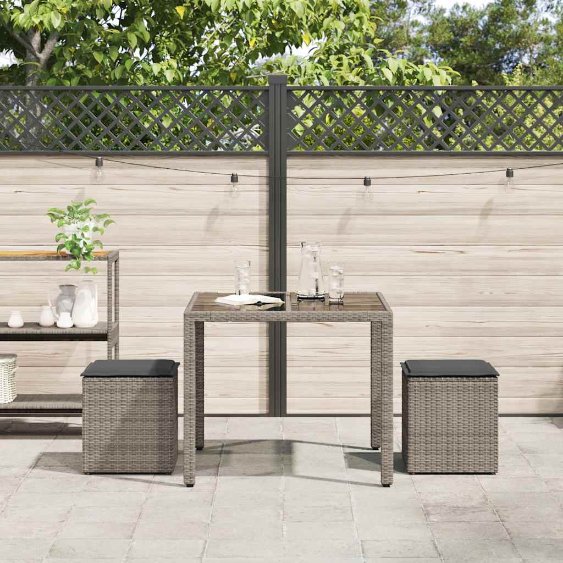 Entspanne dich und genieße die Natur auf diesen bequemen Gartenhockern! Langlebiges Material: PE-Rattan, auch als Poly Rattan bekannt, ist ein robustes, pflegeleichtes synthetisches Material, das die Optik von natürlichem Rattan aufweist. Es kennzeichnet sich durch ein geringes Eigengewicht und lässt sich einfach reinigen. Aufgrund seiner Haltbarkeit und Witterungsbeständigkeit wird es häufig bei der Herstellung von Gartenmöbeln verwendet.Stauraum: Der Gartenhocker verfügt über einen Stauraum an der Unterseite, der mit einem wasserfesten Beutel zur Aufbewahrung von Kissen, Spielzeug und anderen Gegenständen ausgestattet ist. Der innere Beutel kann mit Klettverschlüssen sicher am Sitz befestigt werden, was für Stabilität sorgt und Bewegungen verhindert.Einfacher Zugang: Der Deckel lässt sich mit Hilfe eines Seil- und Hakenmechanismus leicht öffnen und schließen und ermöglicht so einen schnellen und bequemen Zugriff.Bequemes Sitzerlebnis: Dank des dick gepolsterten Kissens bietet dieser Gartenhocker höchsten Sitzkomfort.Abnehmbarer und waschbarer Bezug: Das Sitzkissen verfügt über einen abnehmbaren Bezug, der sich ganz einfach waschen und pflegen lässt. Gut zu wissen:Wir empfehlen dir, deine Gartenmöbel mit einer wasserdichten Hülle zu schützen, um lange Zeit eine ansprechende Optik aufzuweisen.